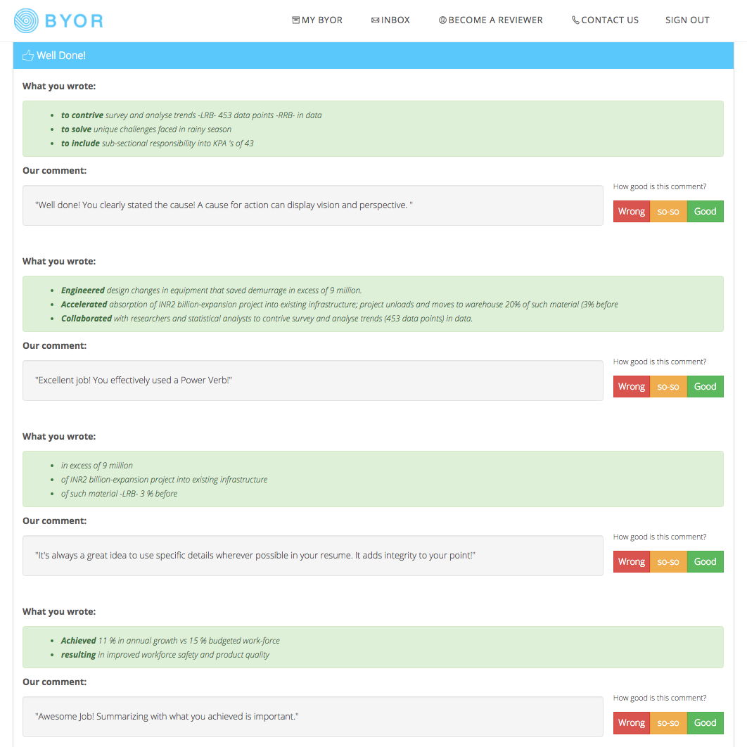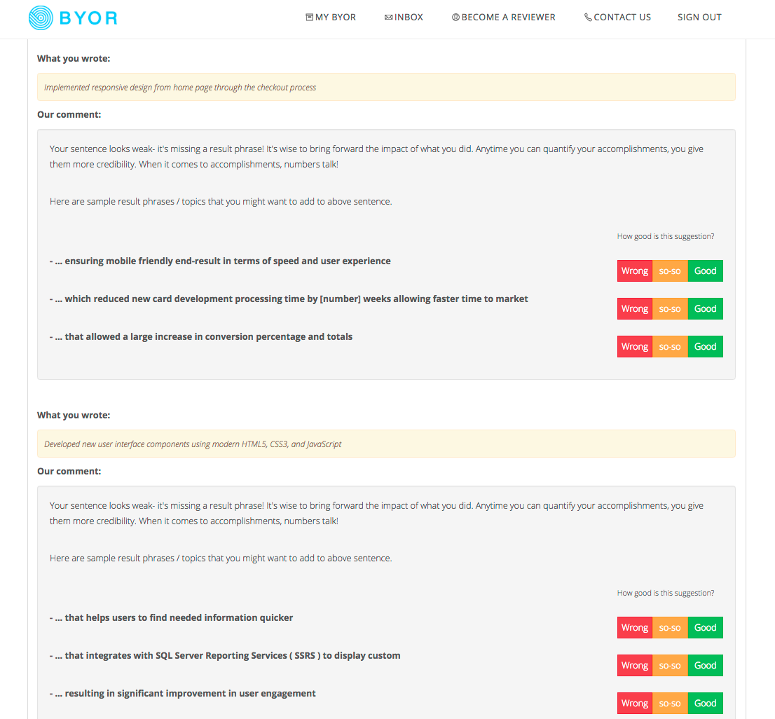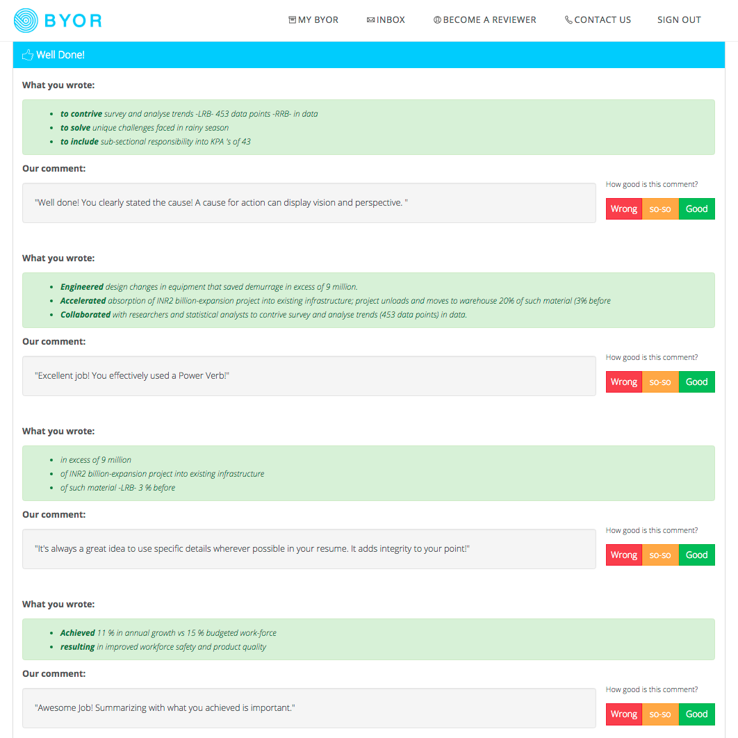 This will work best if you're a data scientist or engineer. I still put my resume through and it picked out a couple of sentences in my resume that could be more action focused.