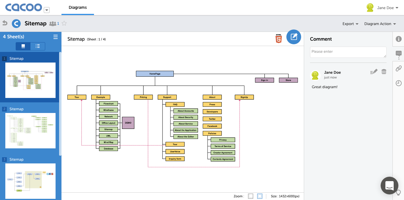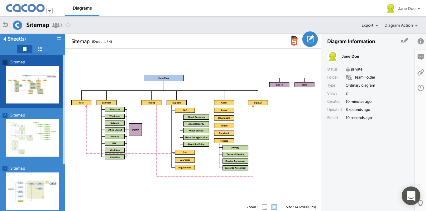 Cacoo is a cloud-based diagram maker for companies, teams, and you.