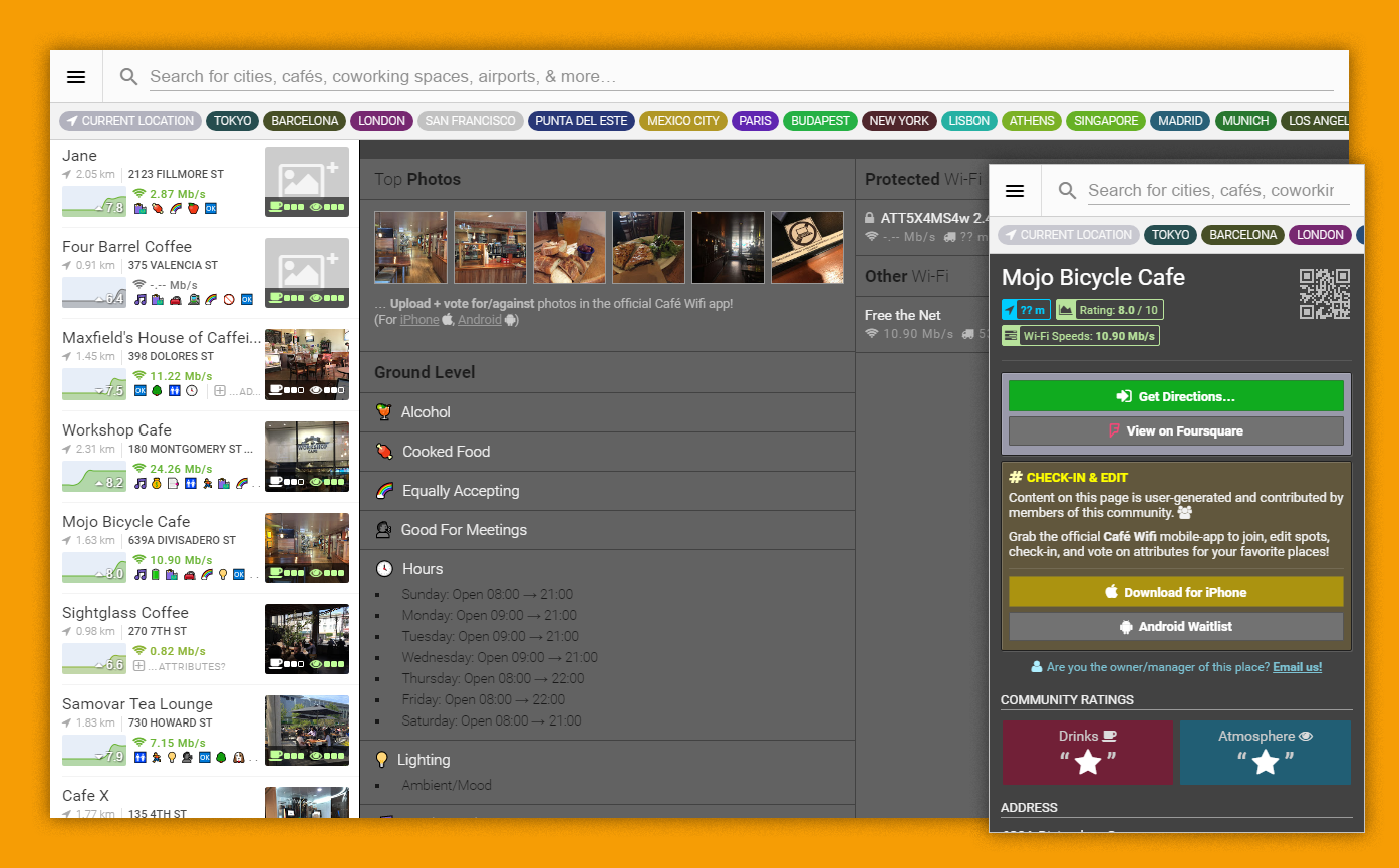 Awesome work @benguild one thing - I would love to be able to add/update places via desktop, I'm more likely to connect to wifi at a cafe with my computer than phone. So adding details that way would make me a more regular user and contributor 👍