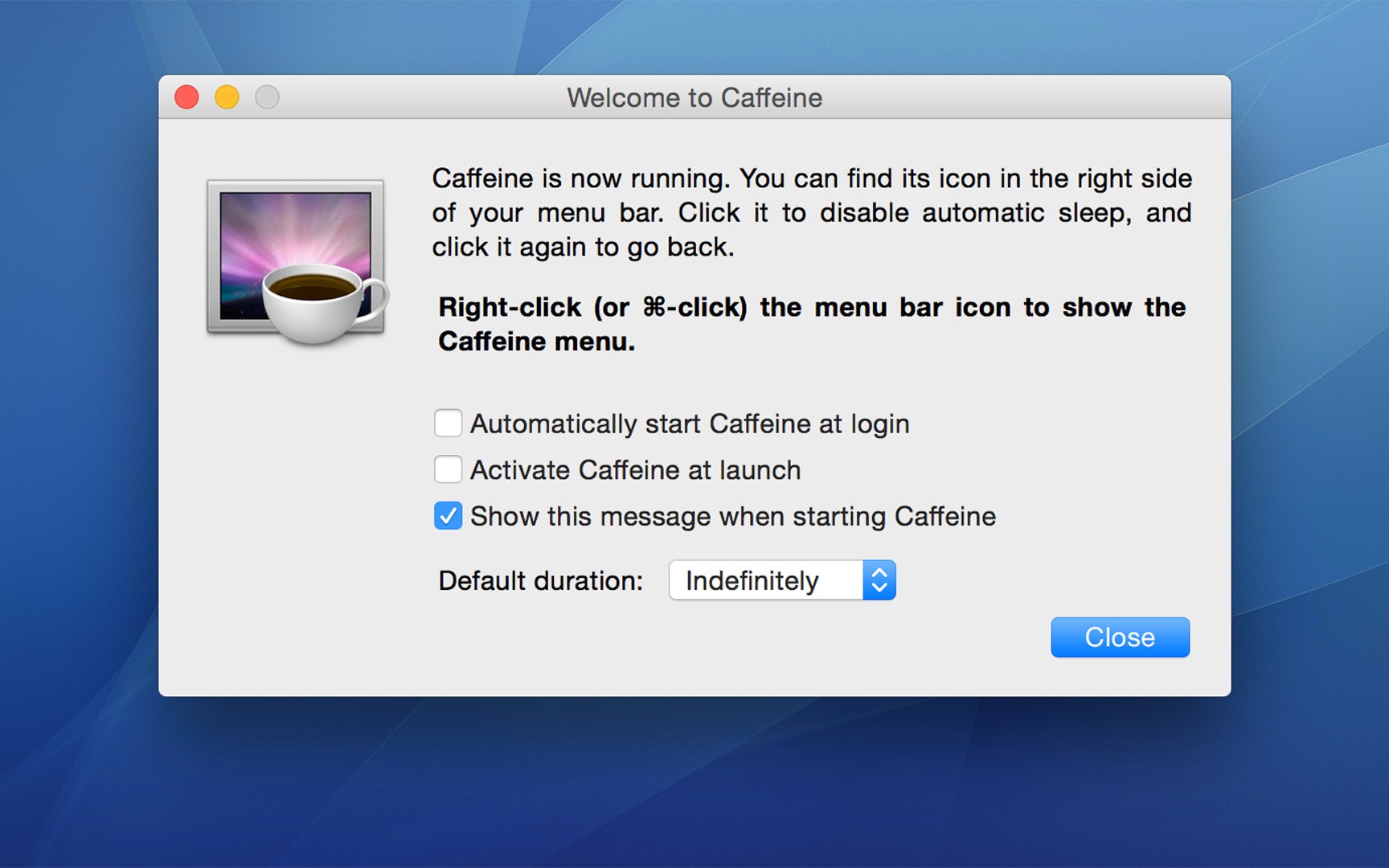 +1 for a really nice icon and toggle functionality. Empty cup = off. Steamy cup = active. p.s. nice comments @rrhoover @ZackShapiro @jonnotie
