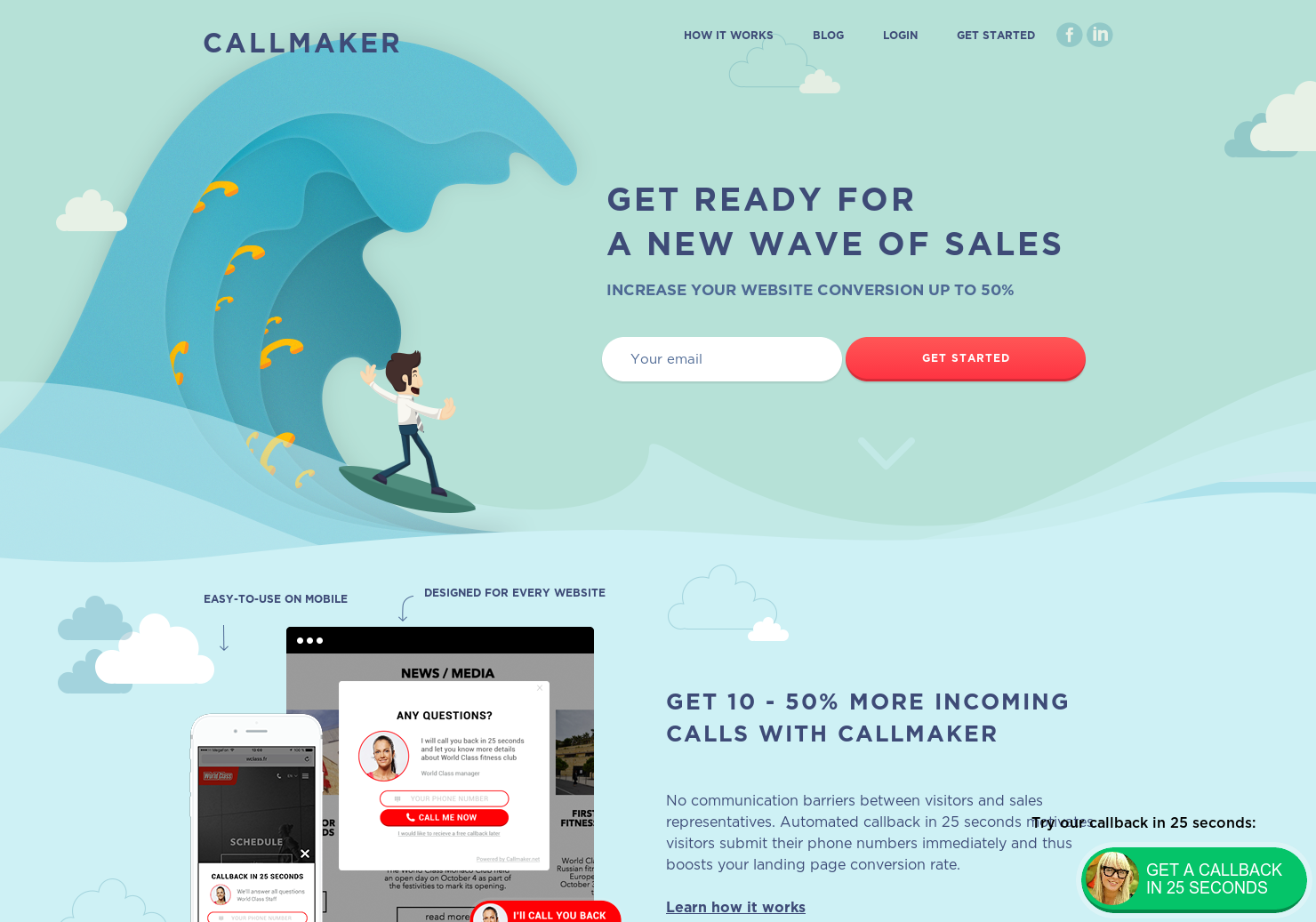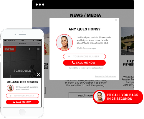 Boost your conversions up to 50% with callback in 25 seconds. Automated callback in 25 seconds motivates visitors to submit their phone numbers immediately and thus boosts your landing page conversion rate. Website visitor leaves his phone number. Callmaker calls your available sales rep on mobile or landline phones, and then automatically connects with your… See more