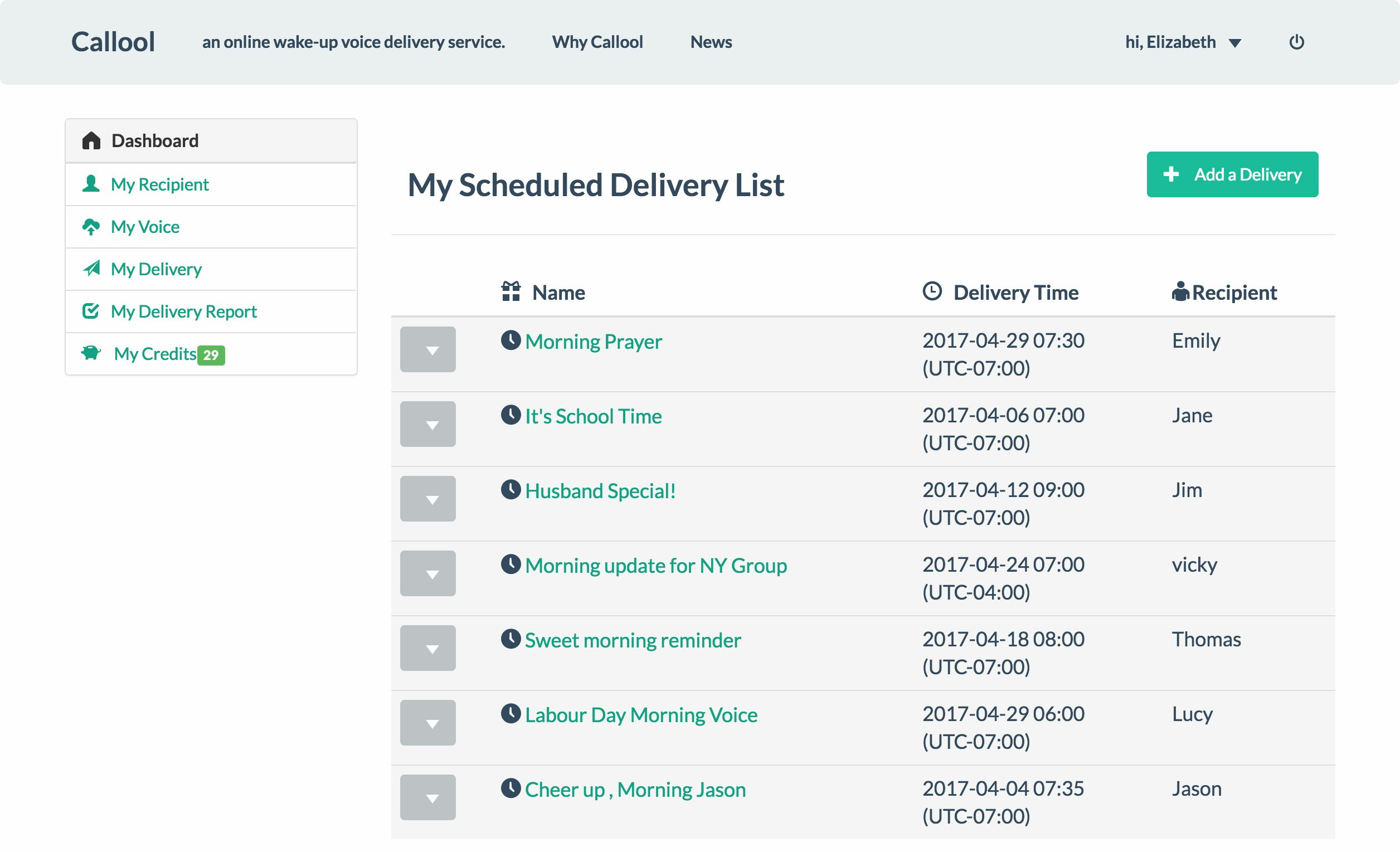 This is Jim from Callool, an online wake-up voice delivery service.