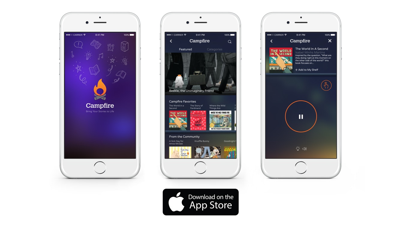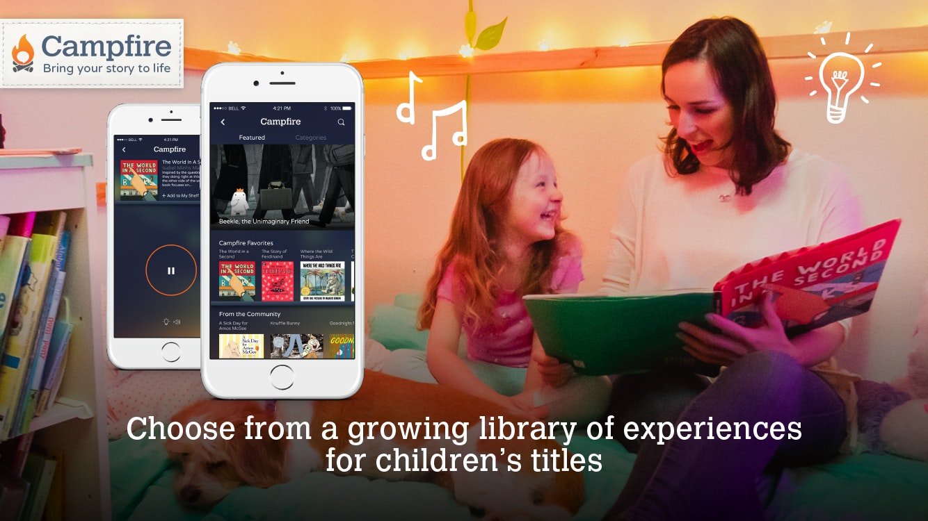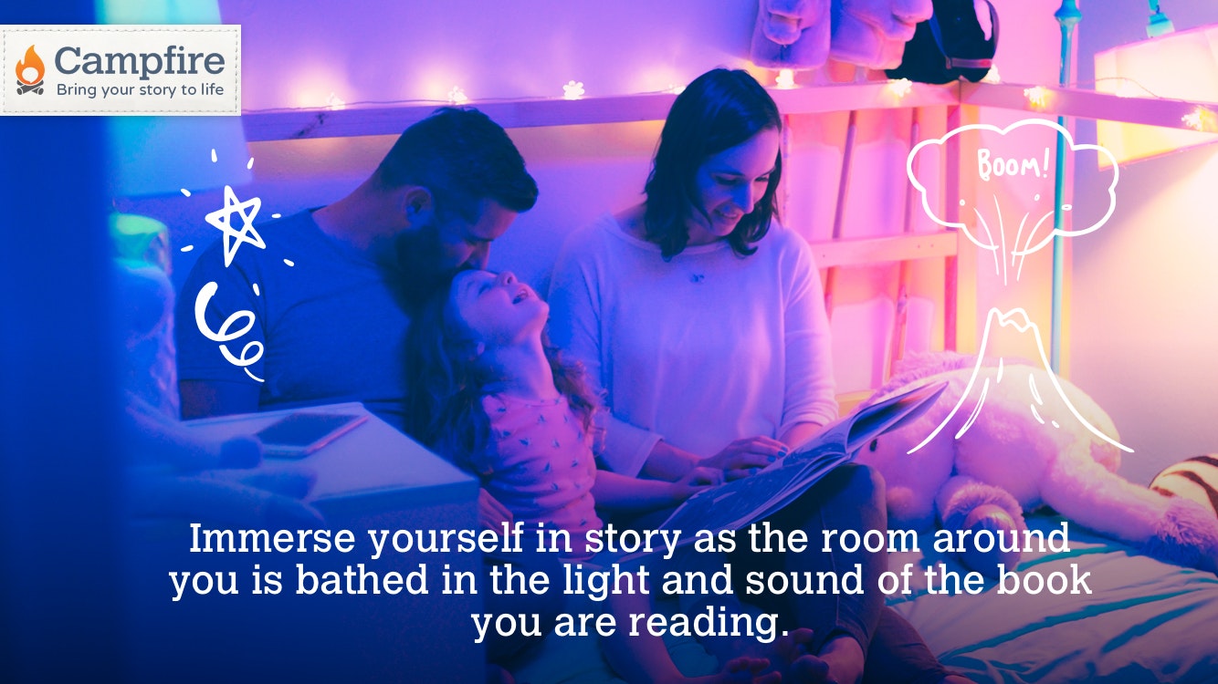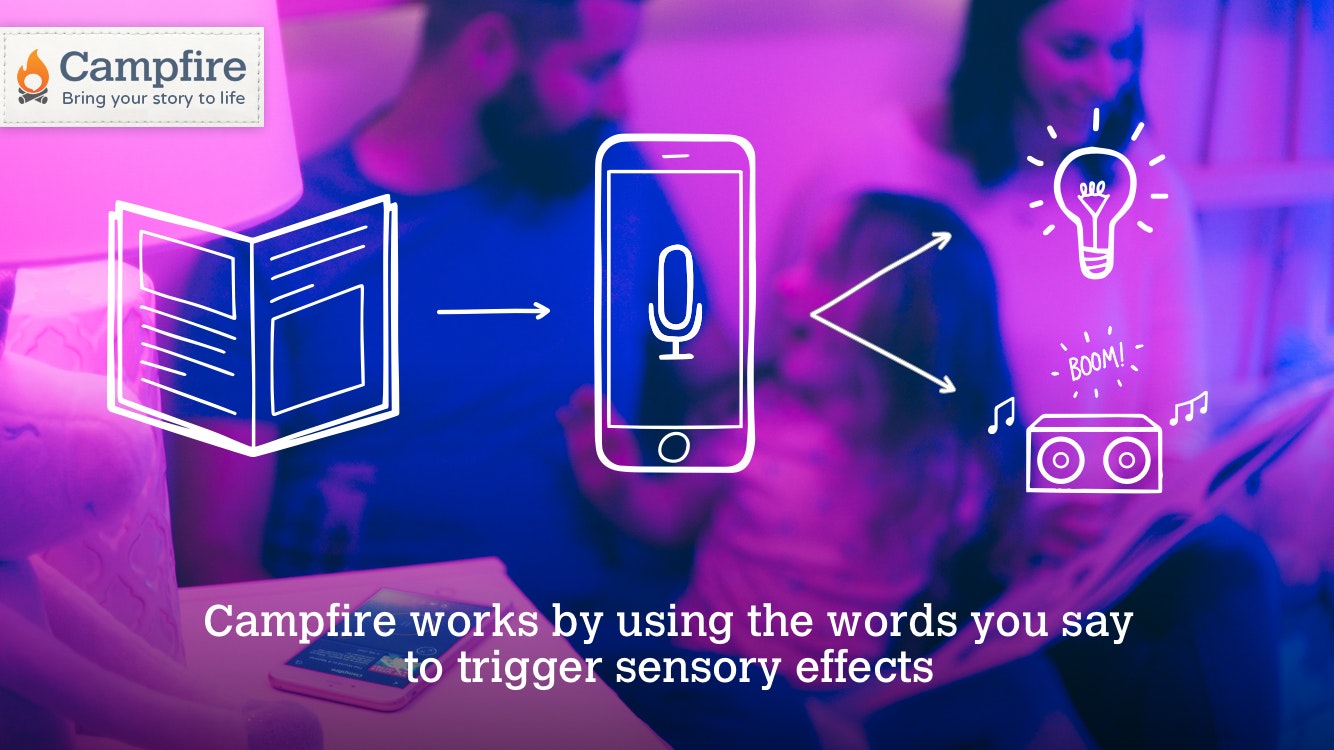The Campfire app follows along as you read aloud, synced with smart lamps and bluetooth speakers to create a more immersive experience. You read real books while your phone sits on the table. You can see how it works here; https://vimeo.com/153836219