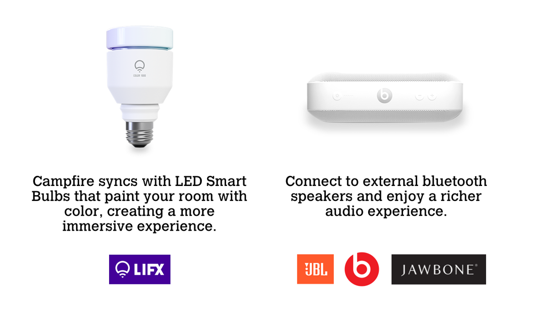 The full product is made up of a few pieces, including the mobile app that contains a library of immersive, custom-created experiences that emit colorful showers of light, cinematic music scores and accompanying sound effects, that all work together to bring a mood and atmosphere around our favorite stories right into the … See more
