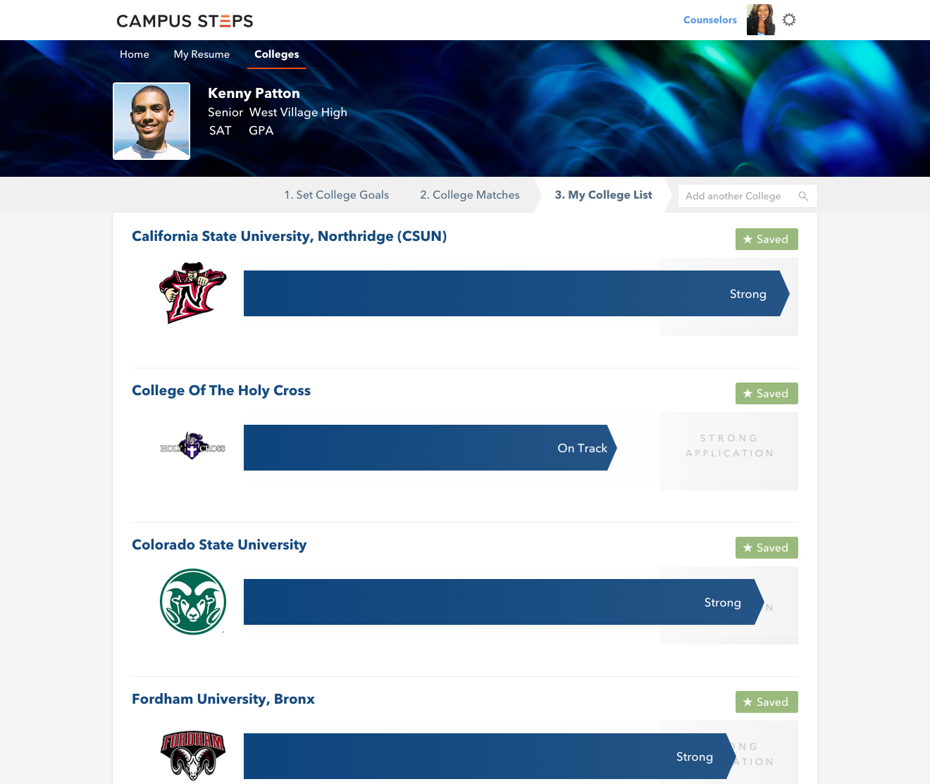 We think that it's crucial (and about time) for all students to have equal access to quality engaging college counseling. Campus Steps is an online platform for high school counselors and students planning for college.