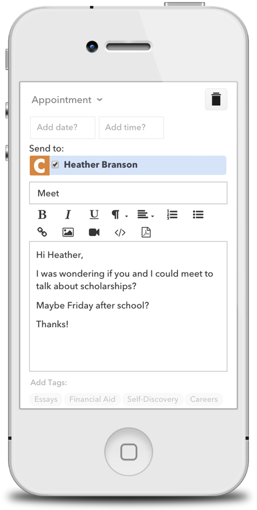 Since the average high school student only gets 20 minutes of college counseling per year, there's a huge need for an easy to use tool. Most kids don't ever see their college counselor, and don't have $3000 to spend on an independent counselor.