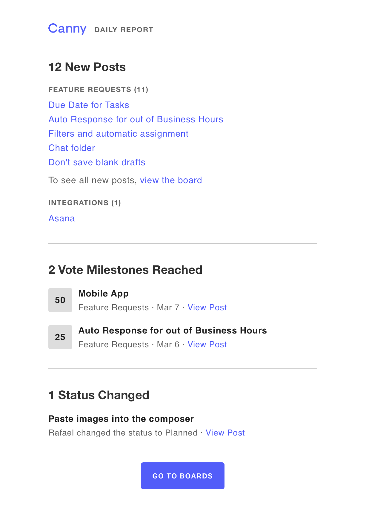 – Send your users to your Canny board where they can post & vote on feature requests