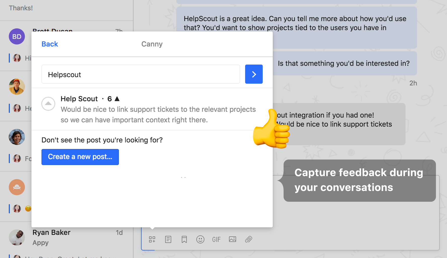 With Canny for Intercom, you can capture feedback you get from customers during conversations. You can also collect feedback directly in Intercom's new Messenger home. Show your customers that their feedback is valuable. Canny will send updates when you launch new features. Setting it up only takes a couple minutes. Try it out! 🙃