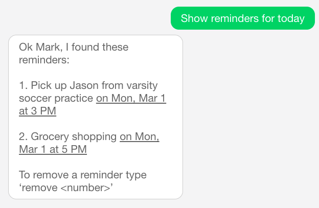 Show reminders for [person/time]