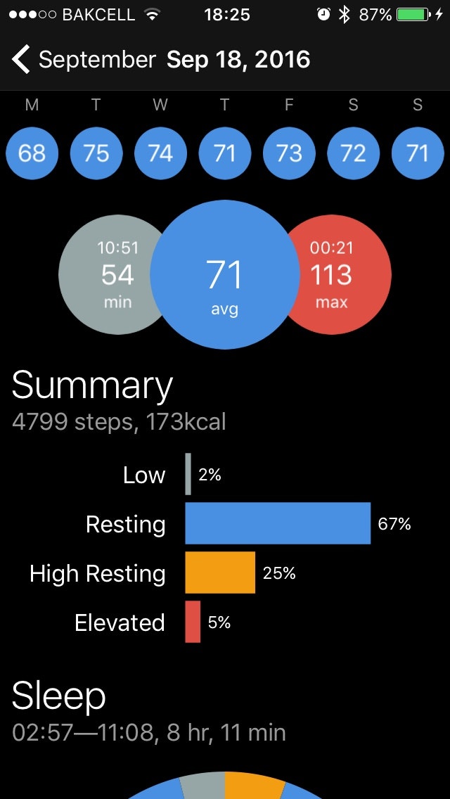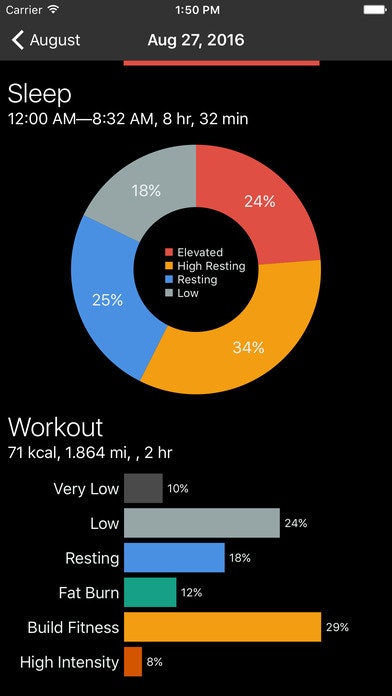 Apple Watch measures the heartbeat every 4 minutes during the day. With the help of the heartbeat data can be found sleep quality, the period of fat burning and high intensity during workout and more. All this can be done using CardioBot.
