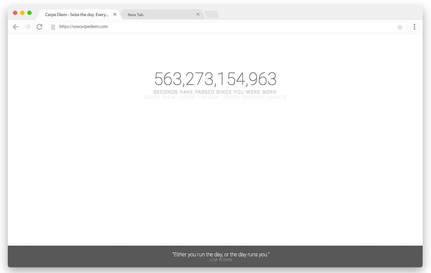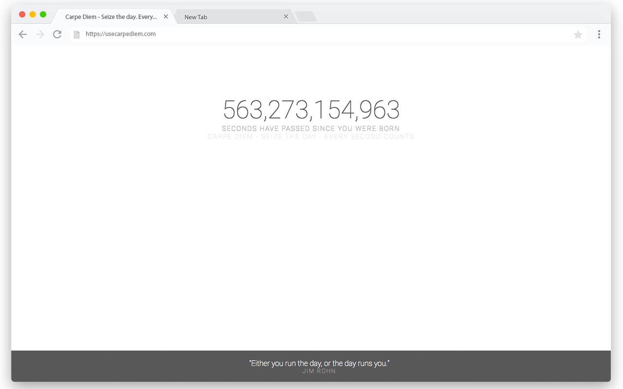 I'm quite a motivated person as I'm sure most of you are, but can procrastinate sometimes, therefore this extension reminds you how many seconds have passed since you were born every time you open a new tab and provides a small motivational quote to keep you on track. Just the visual reminder of the seconds ticker keeps me on track for the day.