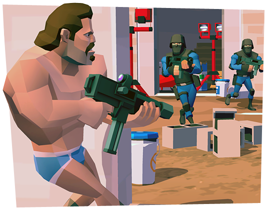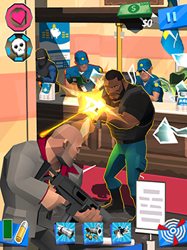 "Crime Pays & Business is Booming! Put your trigger finger on the all new social 3D shooter!"