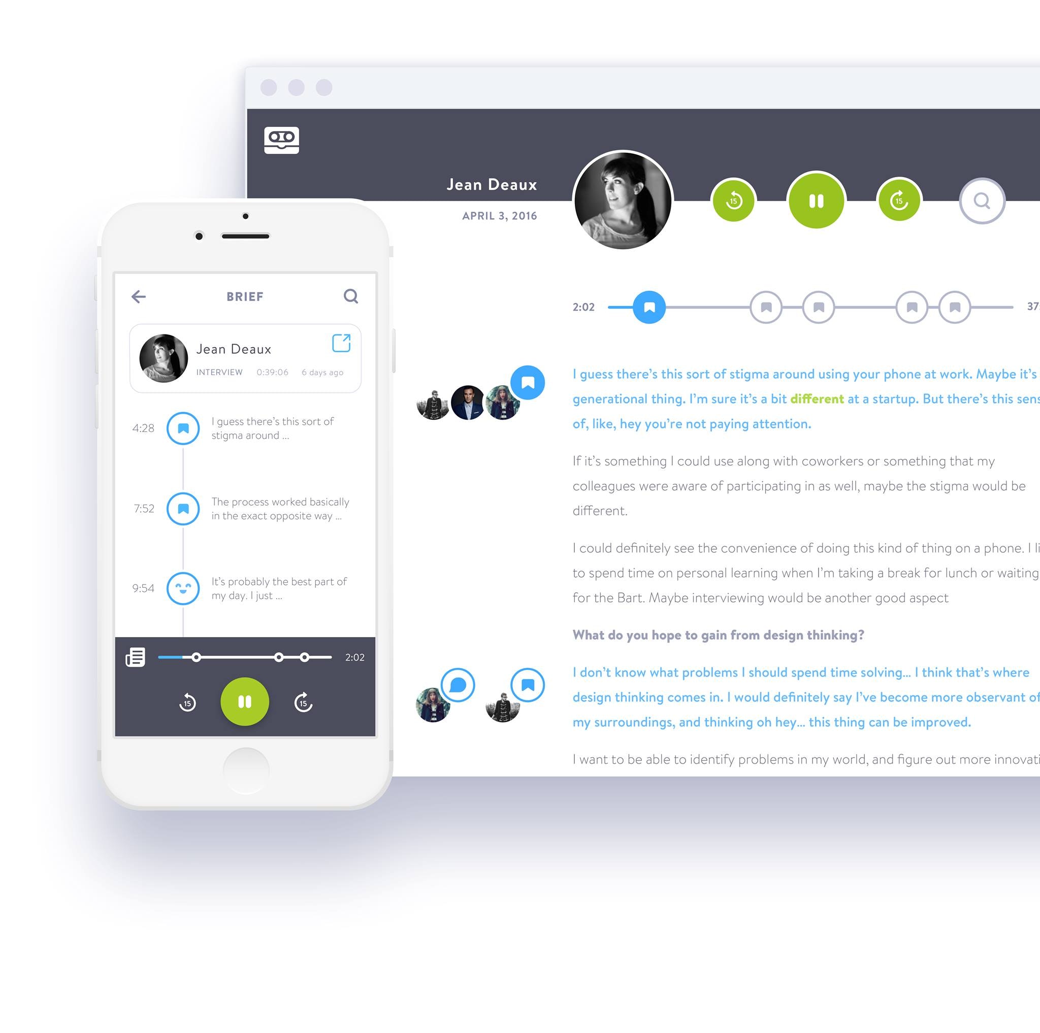 Cassette is the best way for designers to record & share user interviews. With almost no overhead, you can record, transcribe, and bookmark key moments in user interviews – and share it all with your team.