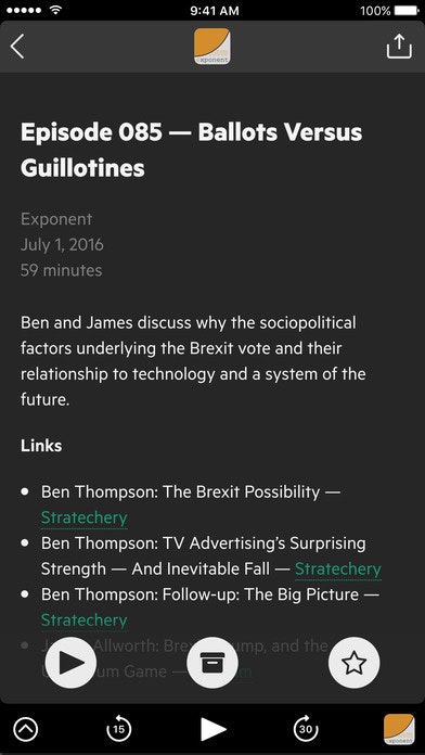 Fantastic app, and has some useful inovative features not found in any other podcast client, that help you triage new episodes and stay on top of the ones you really want to listen to, no matter the number of subscriptions. What I would like to see is an iPad app, trim silence and smart speed (this is becoming the standard for good reason), artwork on the pl… See more