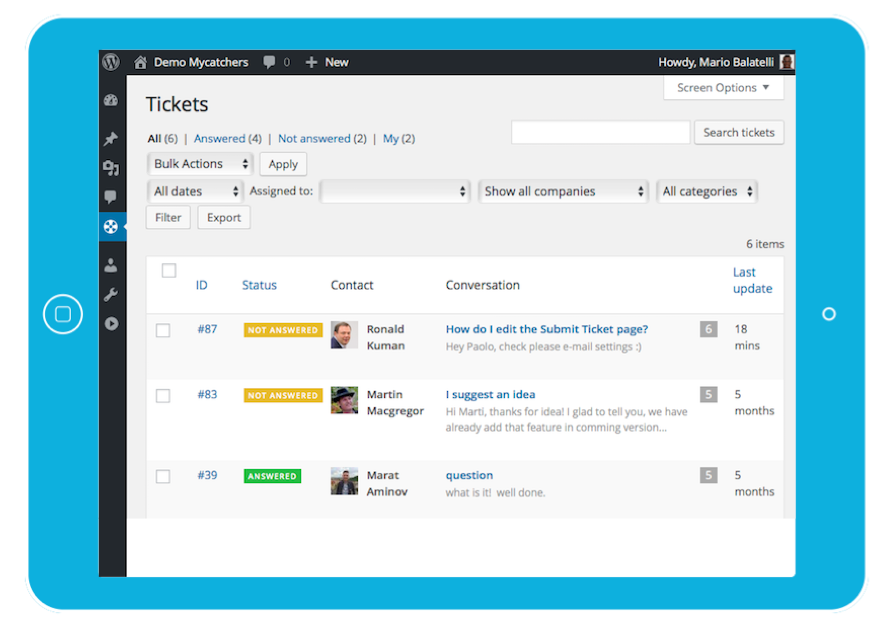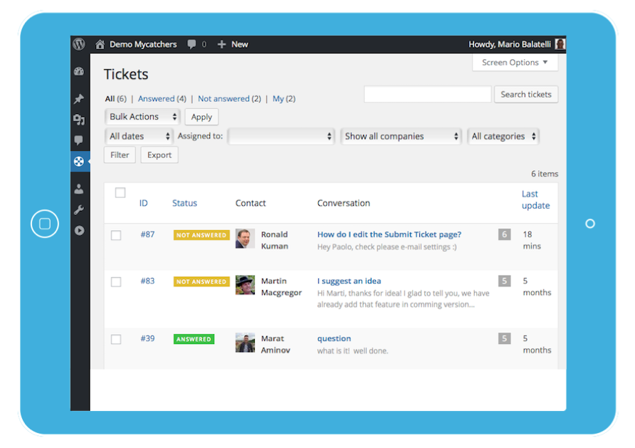 WordPress Plugin for the customer support inside admin area