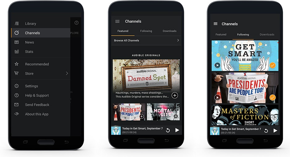 Listen to original audio series. Plus, Follow channels to create your personal listening list. Audible editors handcraft playlists for every interest daily. Channels include topics such as news, comedy shows, talks and more.