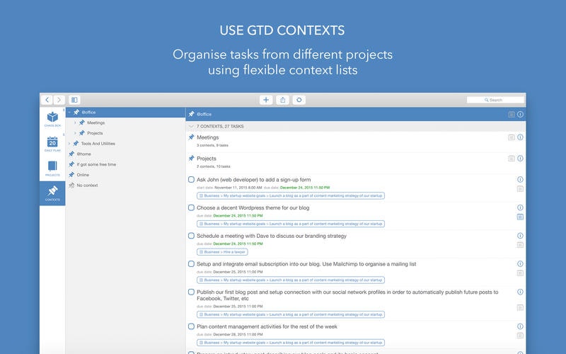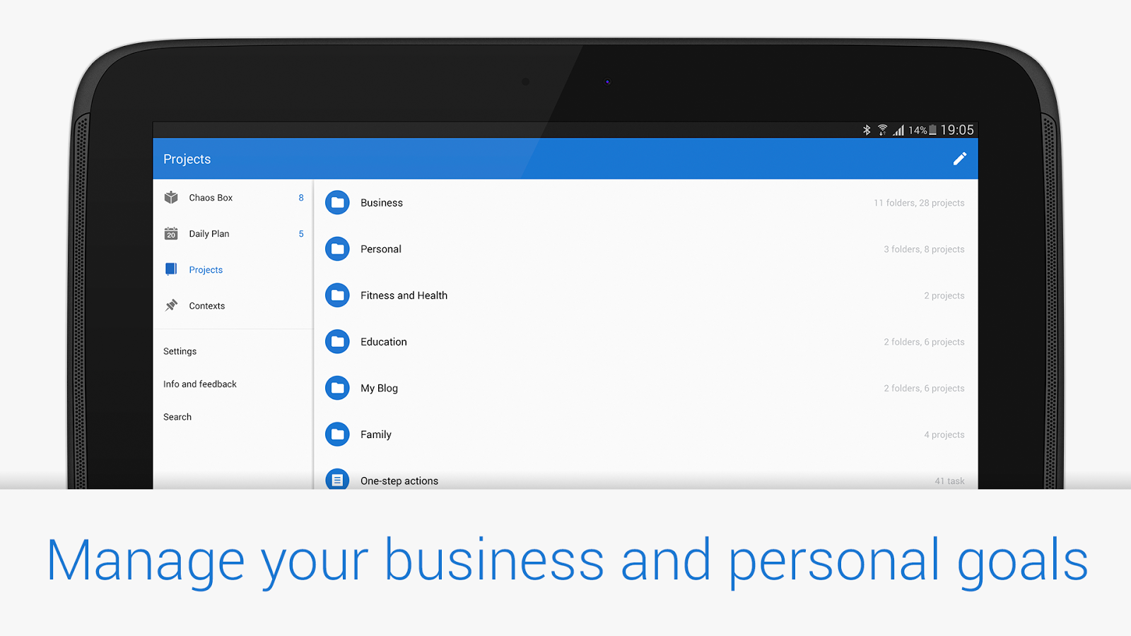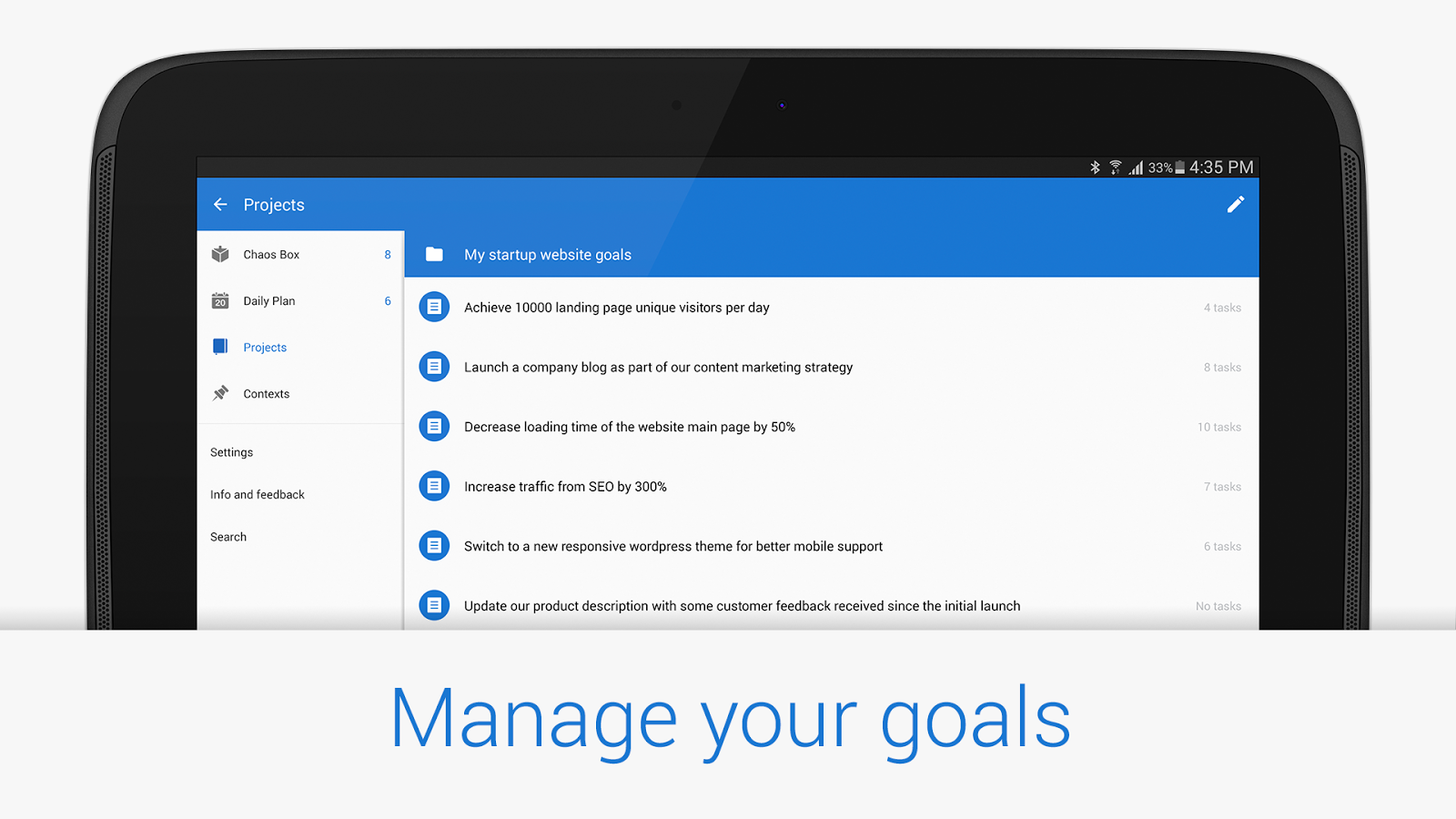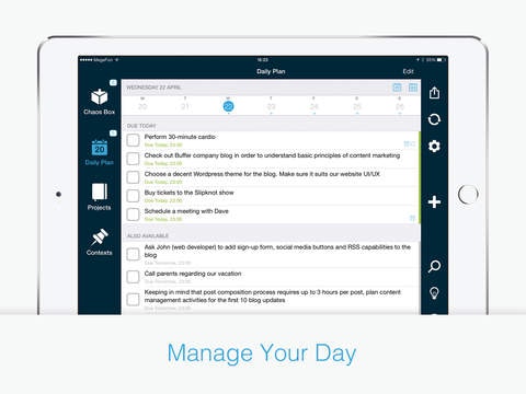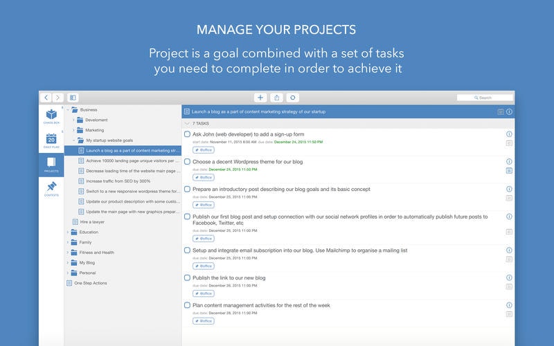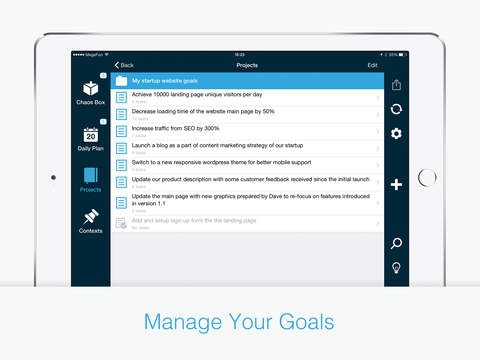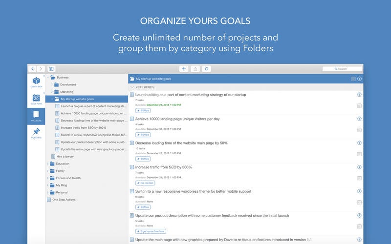 We tried to create an easy to use task manager based on the best ideas of GTD (Getting Things Done), but flexible enough to be used if you're not familiar with the method. It's a goal-centric, meaning that you start with writing down your goals in different cate… See more