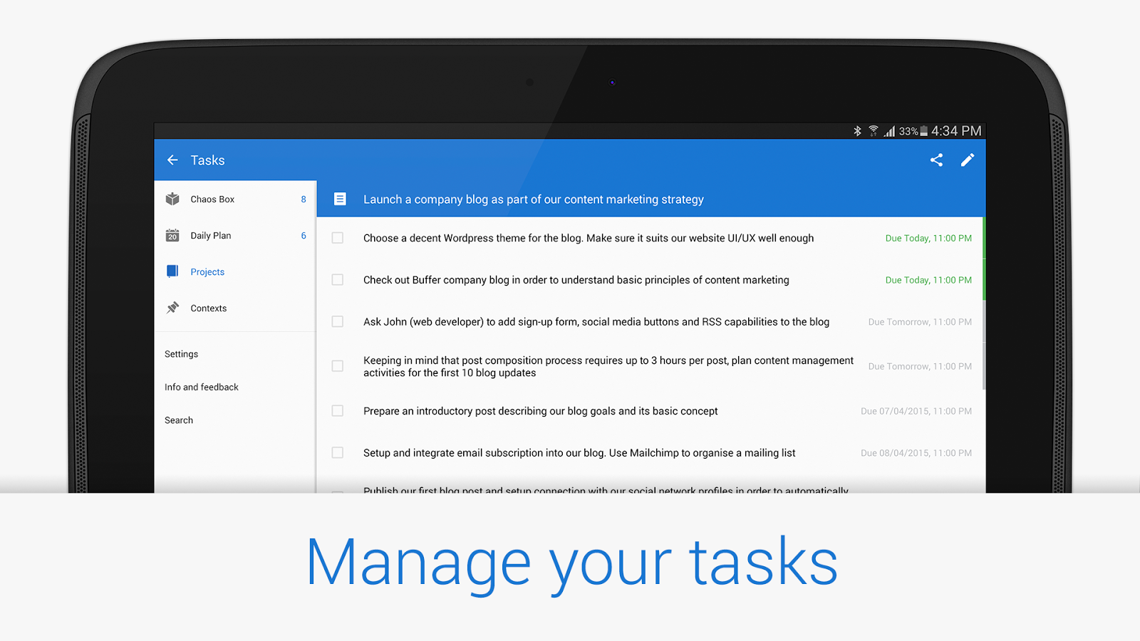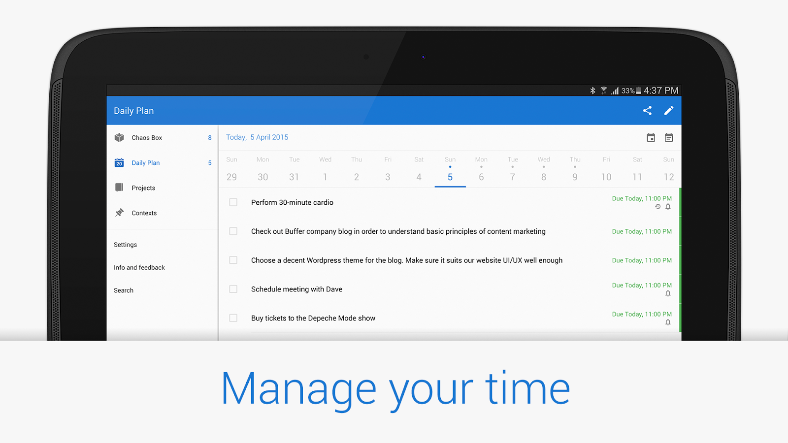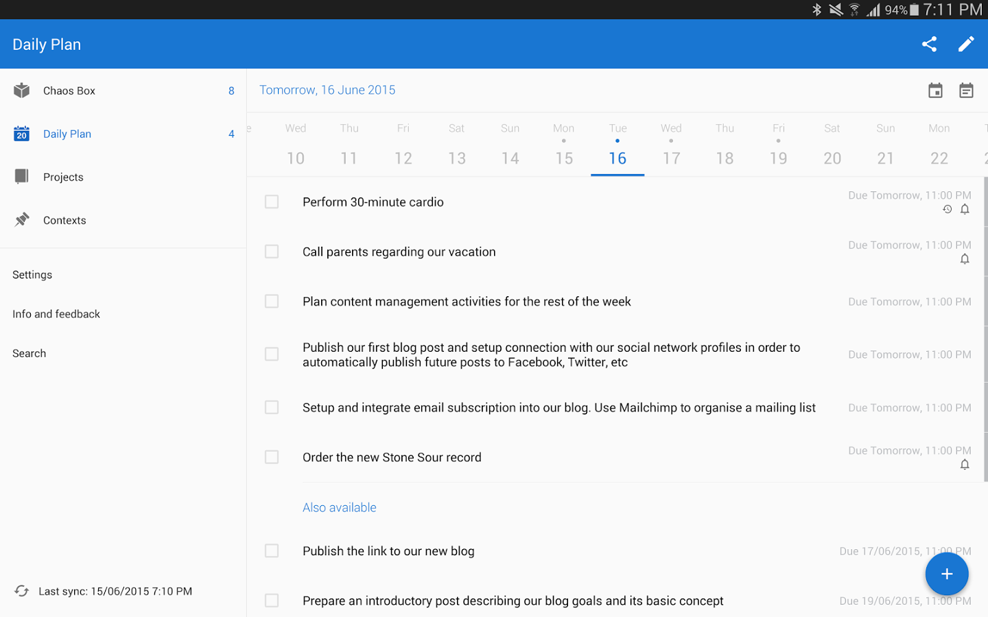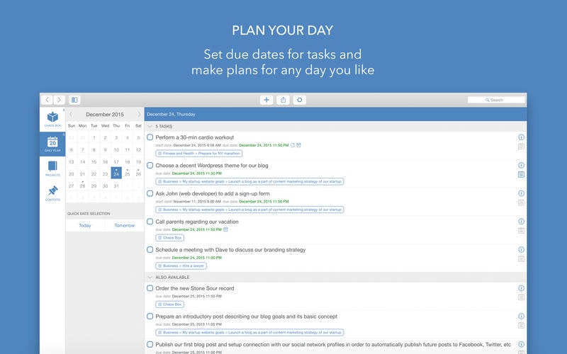 We tried to create an easy to use task manager based on the best ideas of GTD (Getting Things Done), but flexible enough to be used if you're not familiar with the method. It's a goal-centric, meaning that you start with writing down your goals in different cate… See more