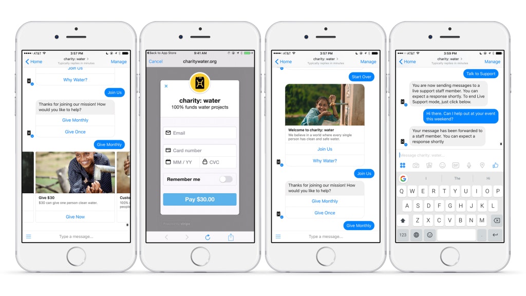 You can read the announcement from @shanemac on Medium: Introducing donations on Messenger. First up: charity: water - Shane is the CEO of the awesome bot Assist which (I believe) powers the Charity: Water Messenger bot