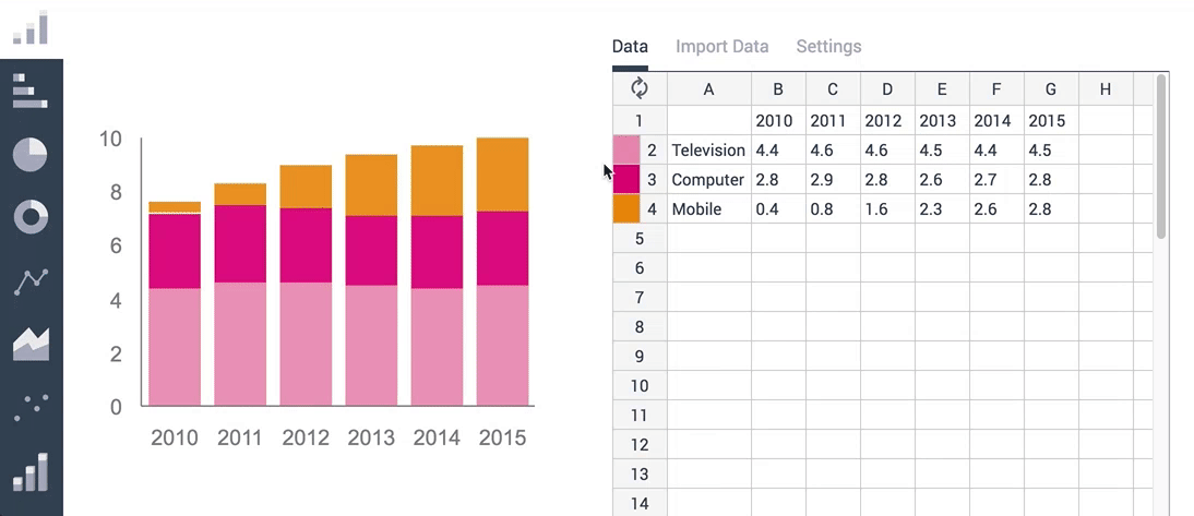 One of the advantages of using Visme to create your chart and graphs is that you have more freedom to customize the look and feel of your visuals, in comparison to traditional tools such as Excel. You can overlay other chart elements, such as lines, arrows and data explainers and tap into a library of thousands of high-quality vector ico… See more