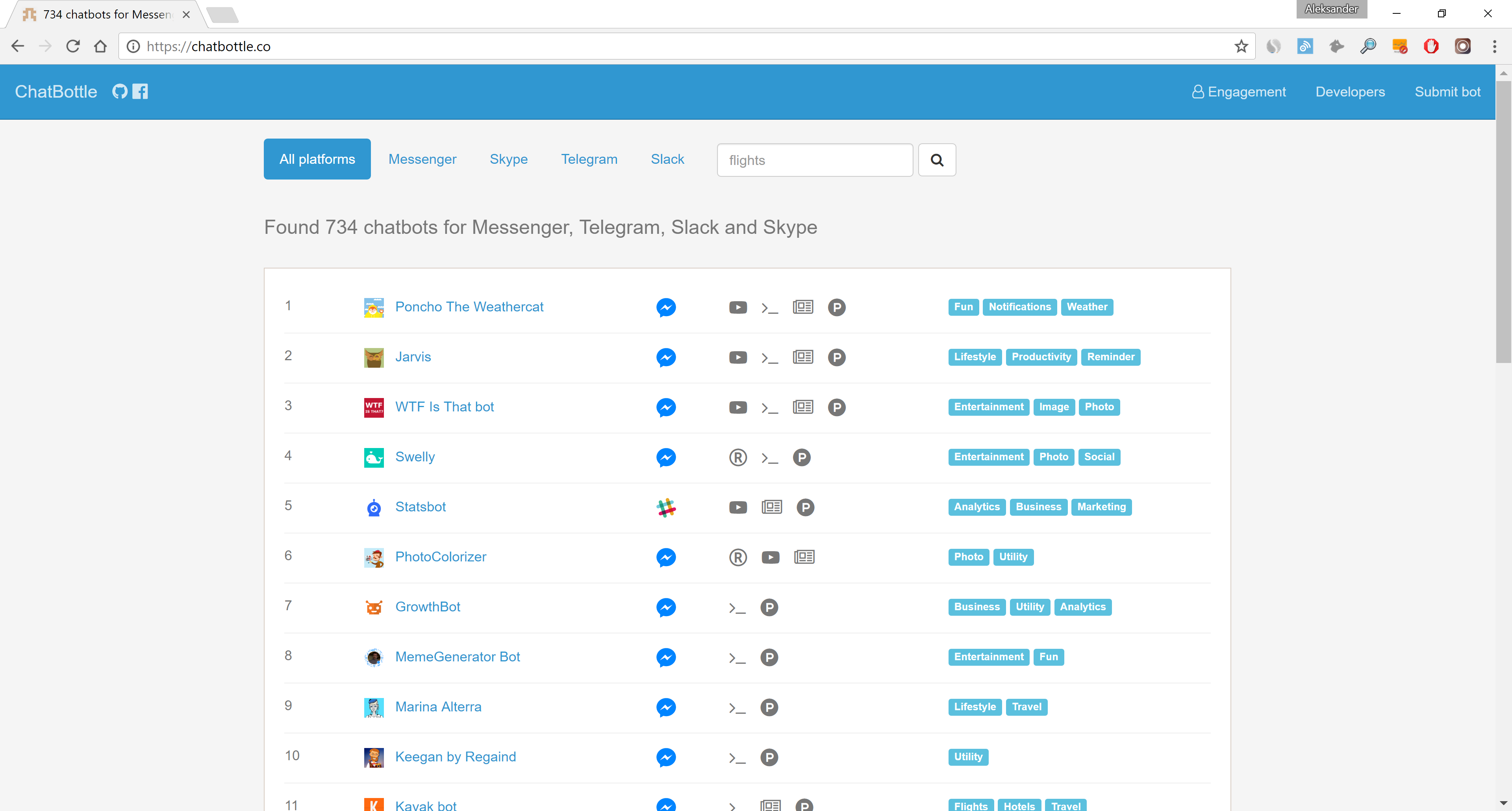 ChatBottle is my go-to bot store! It helped me in discovering all the interesting bots on Messenger!
