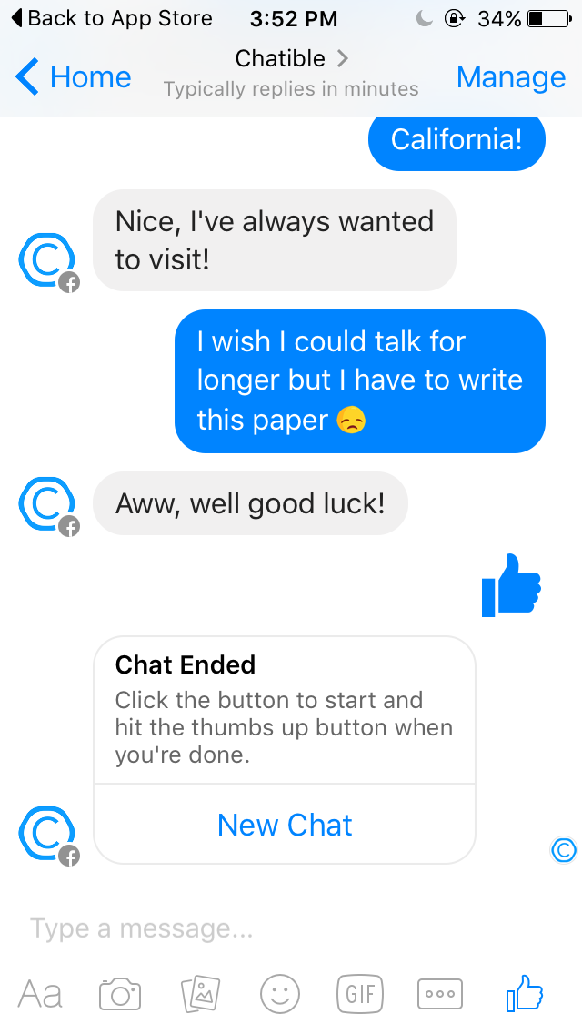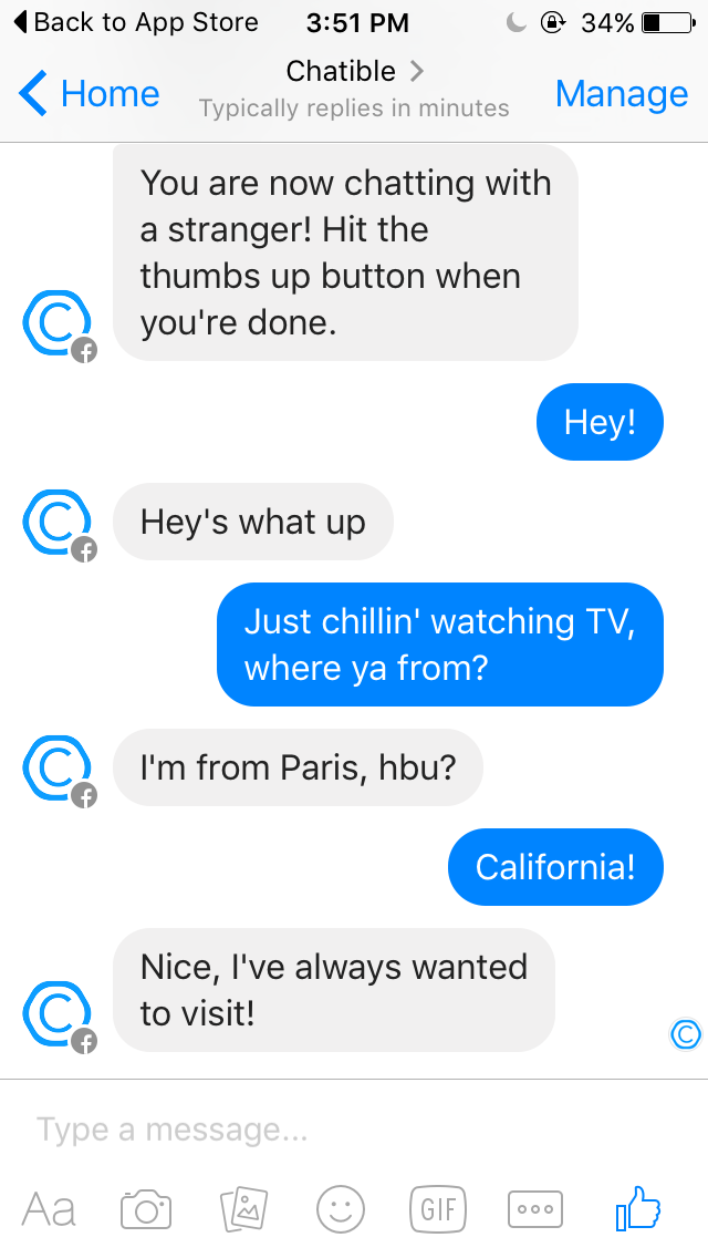 One of the first bots I've spent more than a few seconds on, seems like a cool concept for FB Messenger