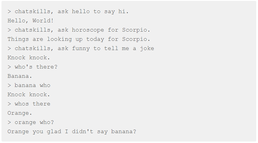 Currently this works only with 'alexa-app' sdk for NodeJS which is an alternative to Amazon's official 'alexa-sdk'. Hope to see more integrations for chatskills soon! :D