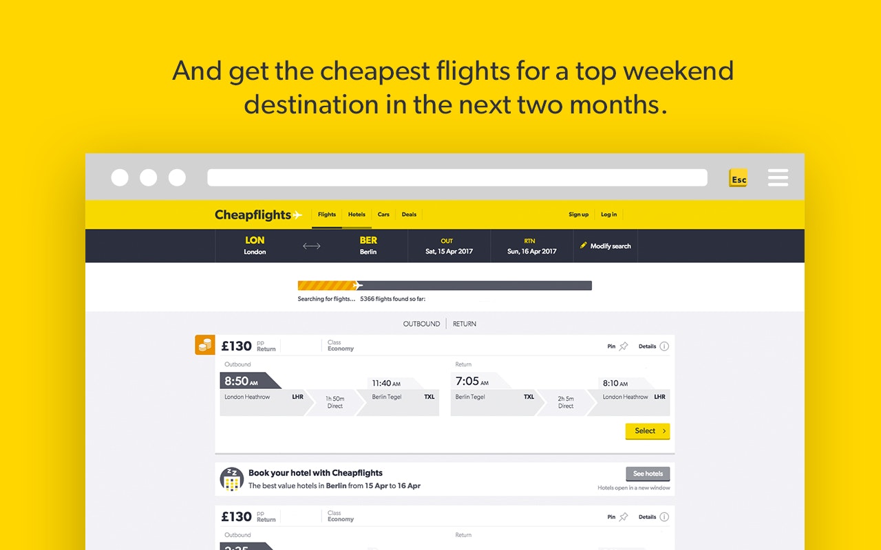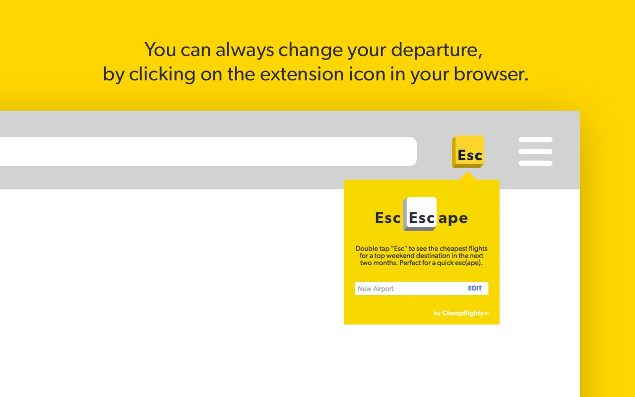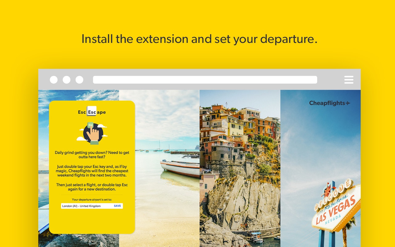 Double tap Esc and it will find you flights to a nearby holiday destination in seconds.