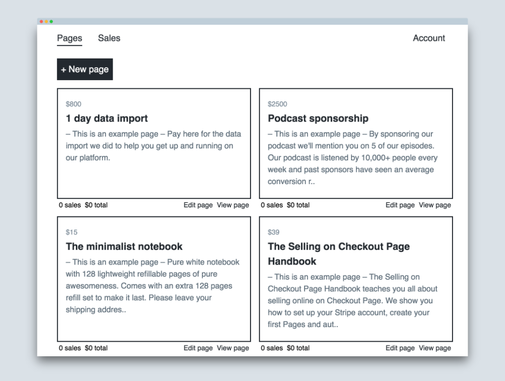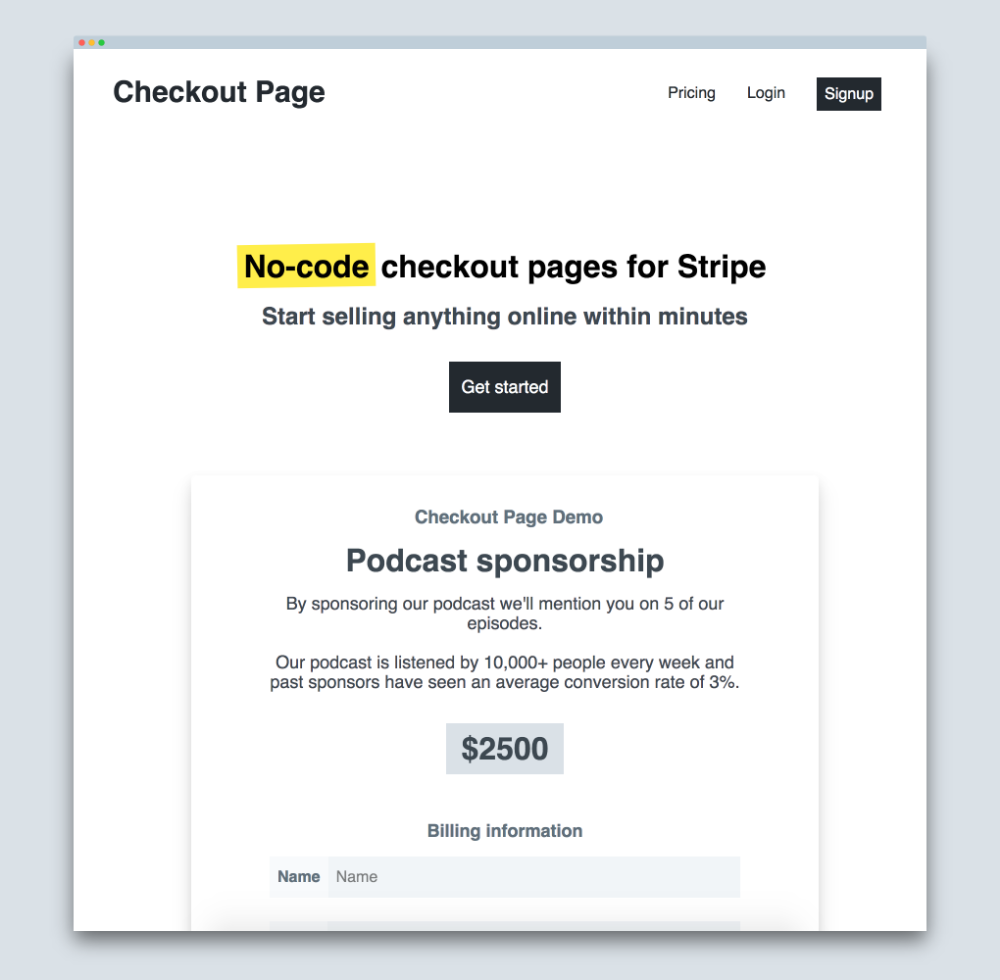 Checkout Page is a beautifully simple, unopinionated way to sell anything online with Stripe. All without writing code.