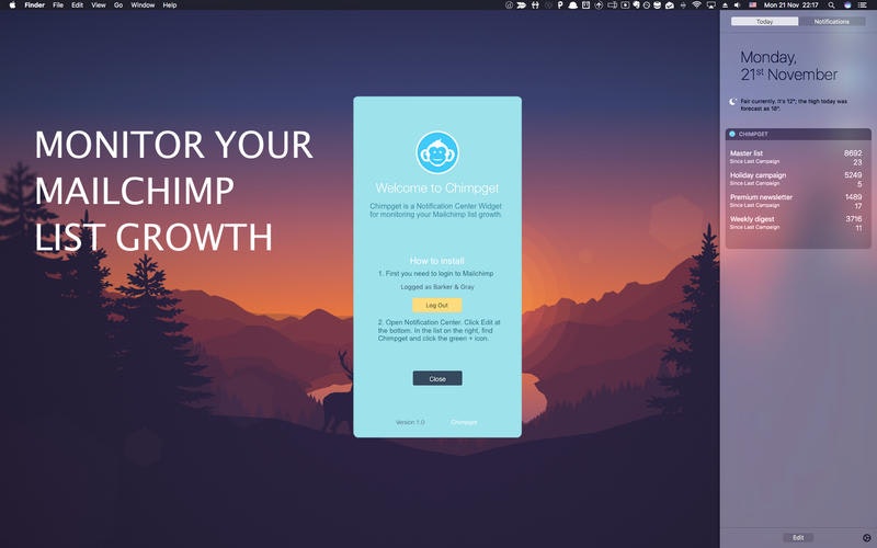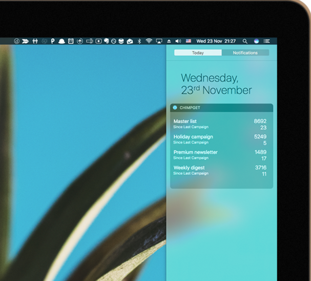 This is a really useful tiny tool that helps save me a ton of time. Now, I don't have to go into MailChimp, click a half dozen times and find out how my lists and campaigns are doing. I just go into the sidebar on my Mac, and check the stats of my latest campaigns right there. The time savings alone are worth the cost.