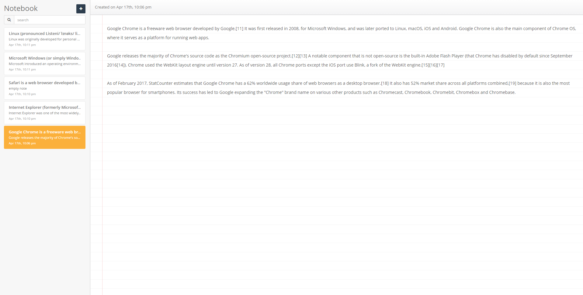 New Tab - Notebook is a very easy and simple way to write your notes in Chrome. Your notes are saved as you type to your local computer.
