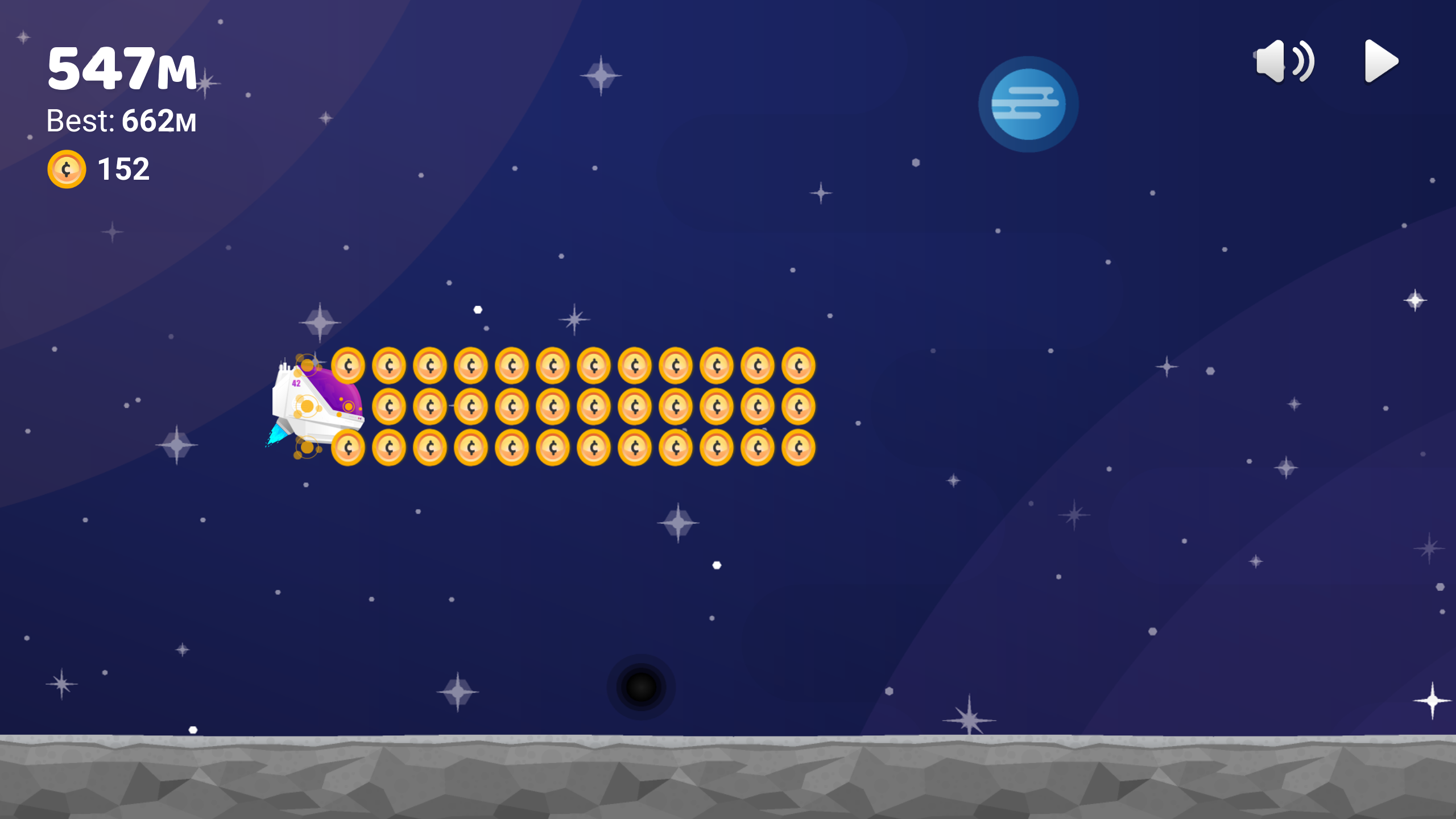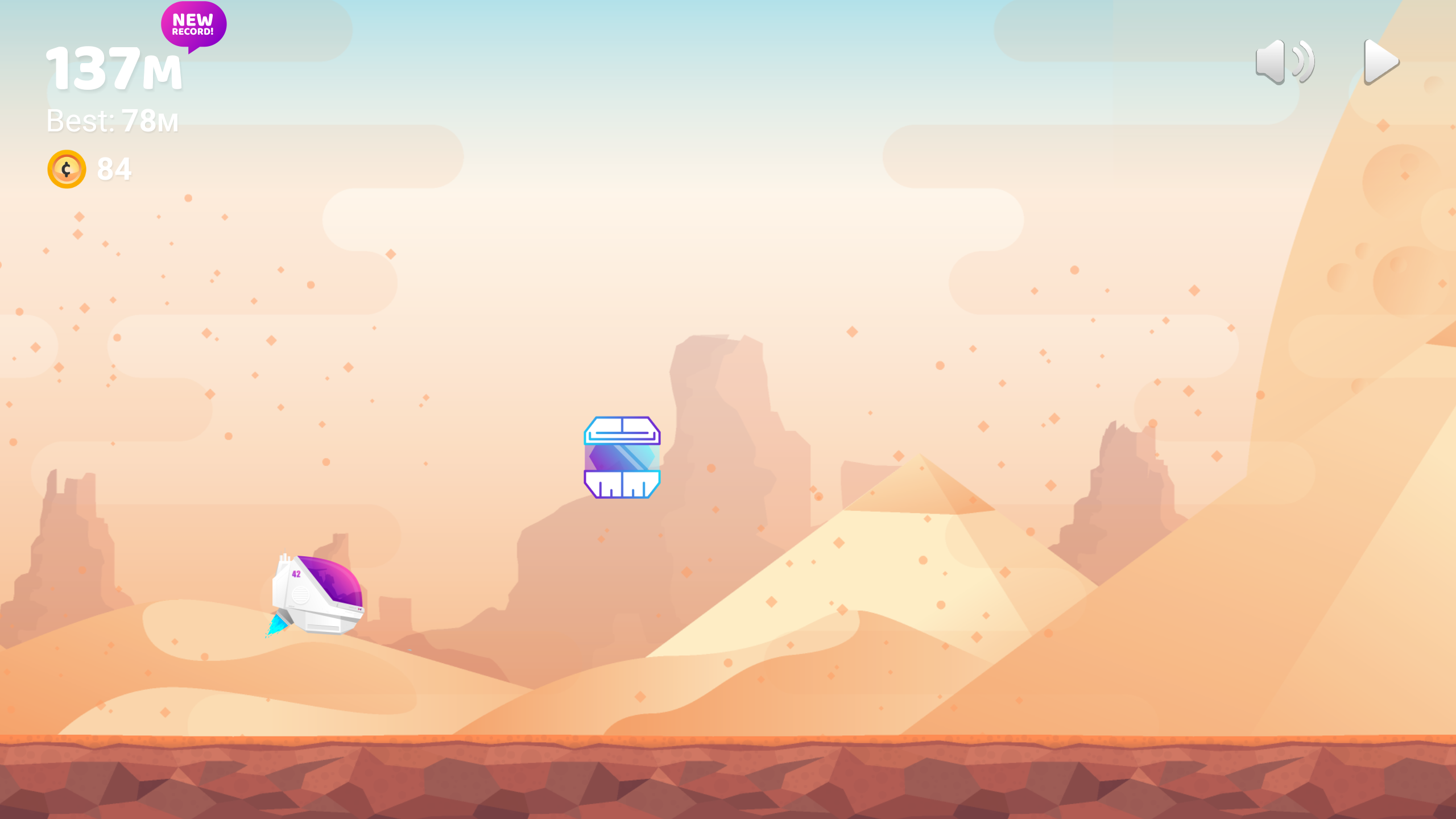Press on the screen to activate the reactors and avoid obstacles. This runner game will transport you through the ages as much through the graphics as with the music.