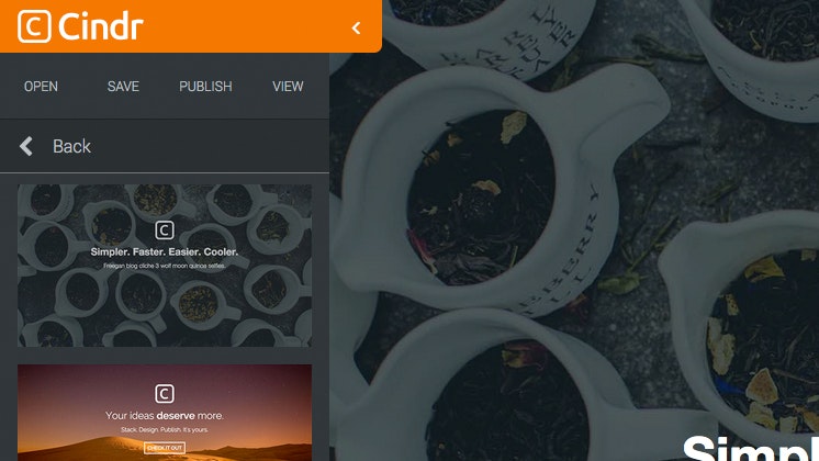 Cindr beautifully displays your online content in customisable, stackable sections we call 'Blocs'. The lightweight, innovative user interface means it's easy to create a stunning, mobile-ready, single-page website in minutes, from any smart device. Signup to Cindr for free using Facebook or email.