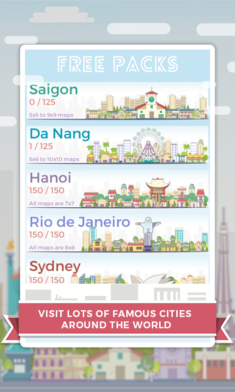 Hi everyone. An update for Android is out with 4 new packs (with bridges - harder puzzles): Tokyo, London, Paris, and Xmas ;)