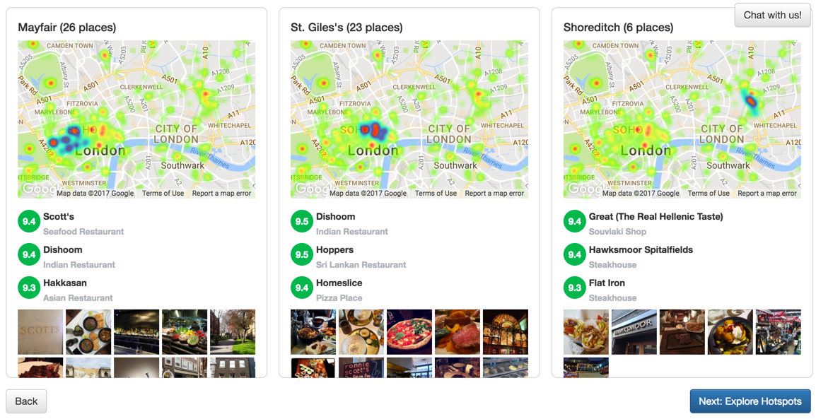 I tried it, instantly got super meaningful results, even in my home town. I will definitely use it to plan my next city trip. Great Job, this is a great example how data points can be combined to create a more meaningful experience! Improvement: The clusters you build are named oddly, even as a local I don't know what they are referring to. Maybe make these … See more