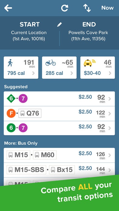 Another transport app?! Citymapper is by far the best one I've found giving you routes/times/prices for public transport, cabs, walking or cycling. Currently only available in London, NYC and Paris though.