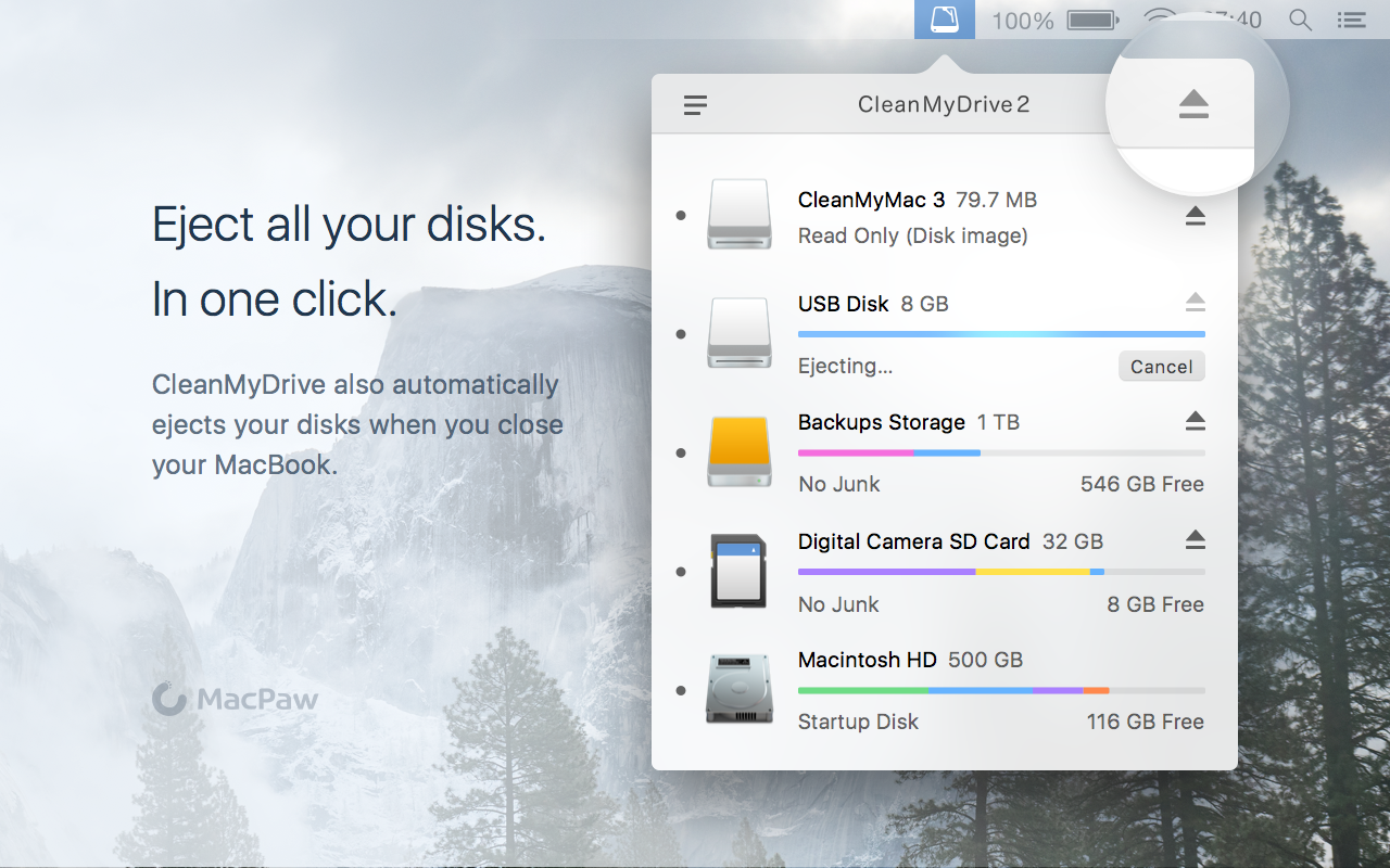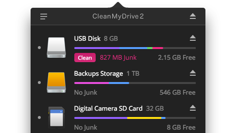 It's a fast and simple disk manager for external and internal drives. With CleanMyDrive 2 you can clean hidden junk from external drives, check on disk stats and drag-and-d… See more
