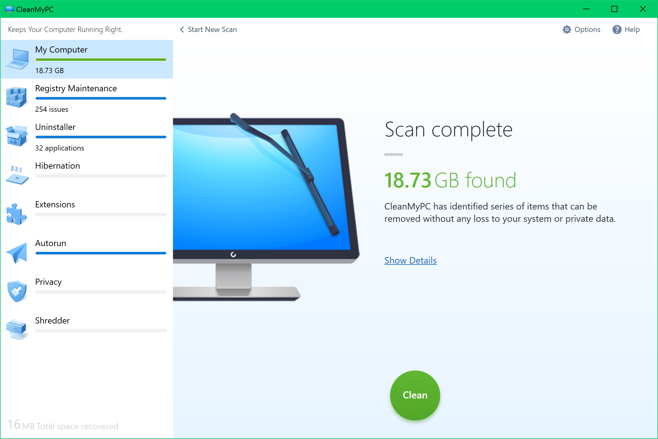 With the new CleanMyPC you can: