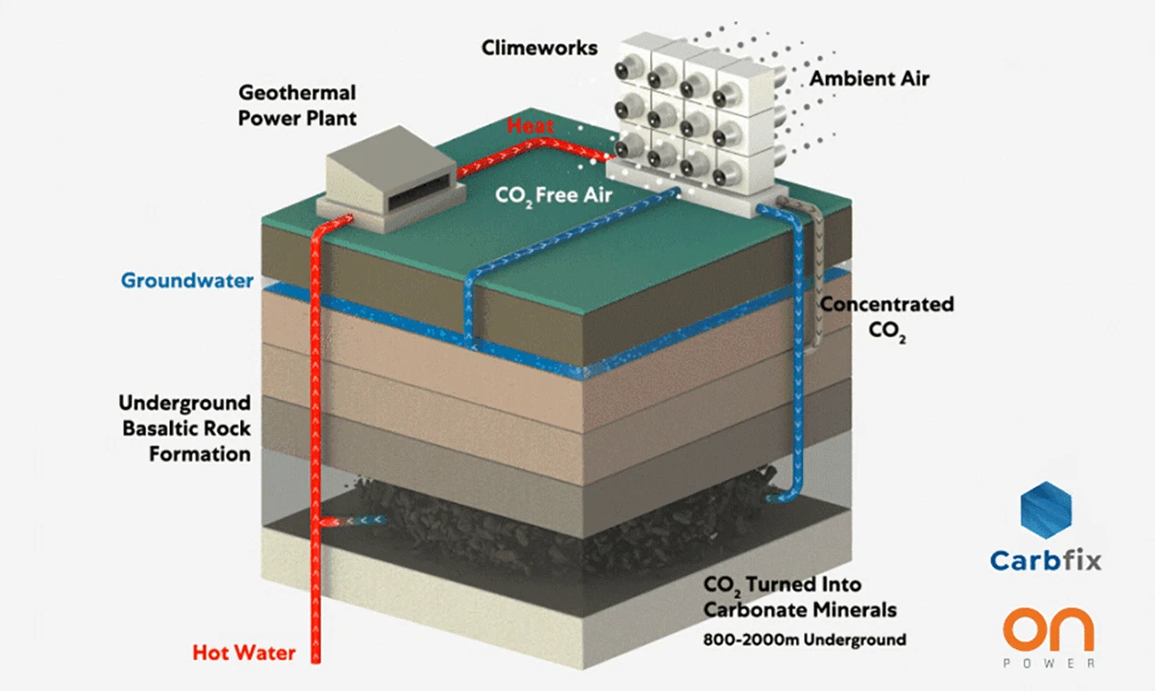 Turn your emissions into stone. We remove CO2 from the air via ‘direct air capture’. Our collectors remove CO2: air is drawn into the collector with a fan and carbon dioxide is captured on a filter.