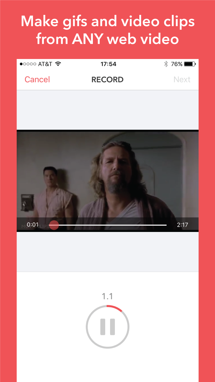 1. Make gifs and clips from almost any web video, without having to download the source video first. So it takes less than a minute, and your data plan doesn’t get destroyed!