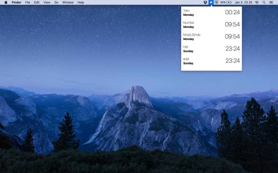 MacOS menubar world clock