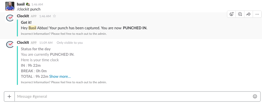 Hey Everyone, We just launched our first integration with Slack. You can now punch IN and Punch OUT using Slack. ClockIt will calculate your work duration and over time. Let us know what you think :-)