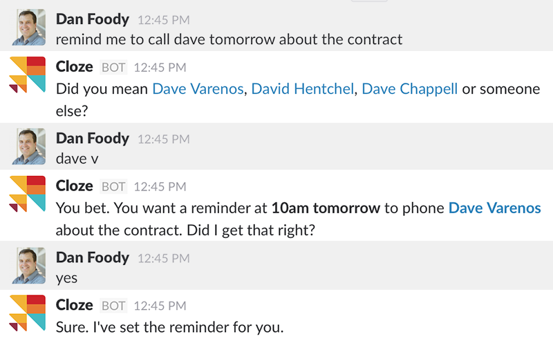 Today we’re releasing Clozebot—a Slackbot designed to keep your team on-top of their contacts, projects and deals.