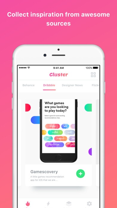 Cluster is an application built to help you collect inspiration for your next design creative project. The application features the following: