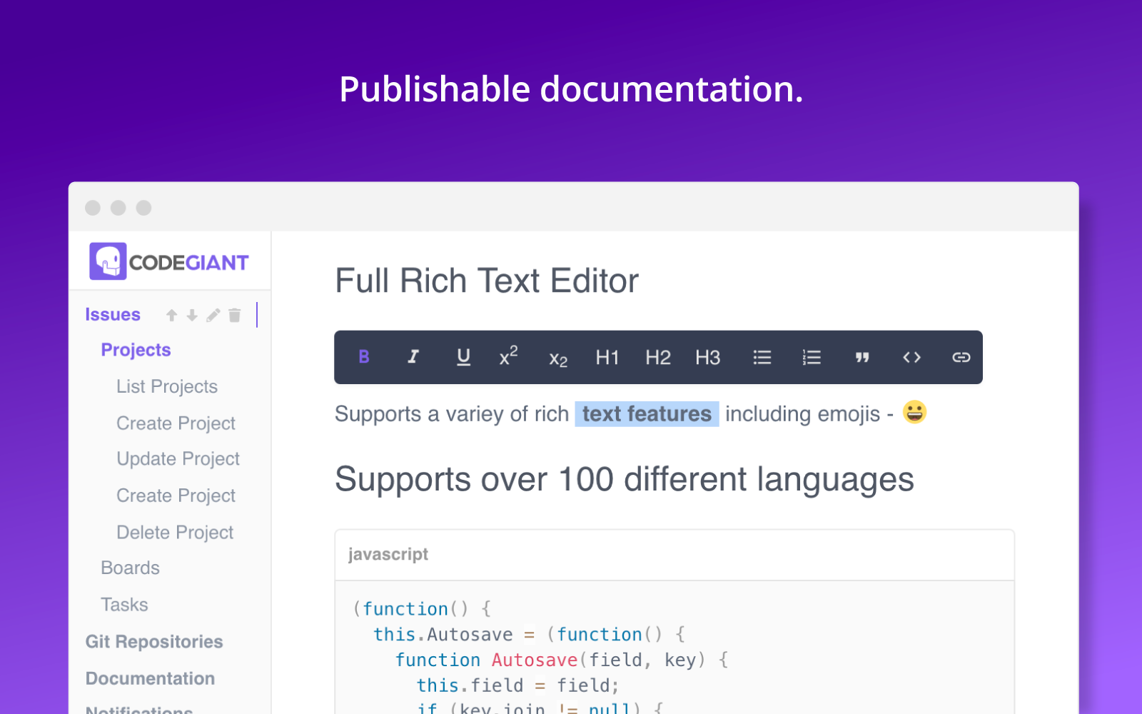 The documentation through Codegiant looks beautiful and has rich text editor. It is easy to create documents and share with others. Hope you like it 😇