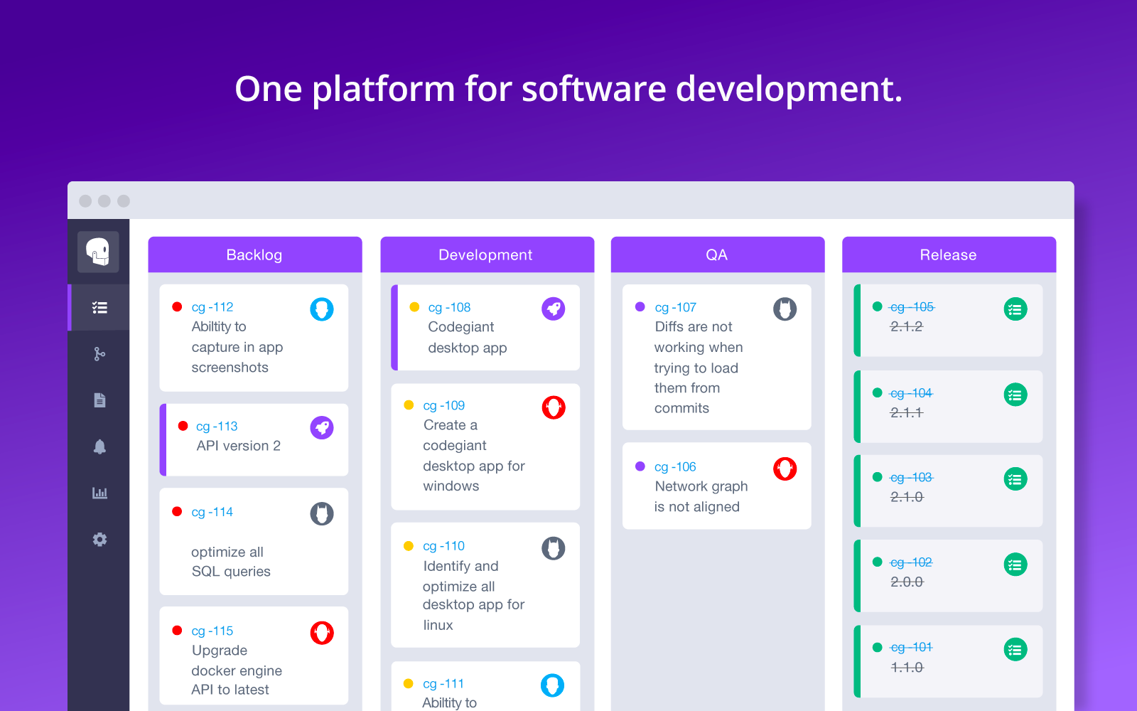 Codegiant includes pretty yet powerful tools for agile project management. It is meant to be a single platform for project management 💼