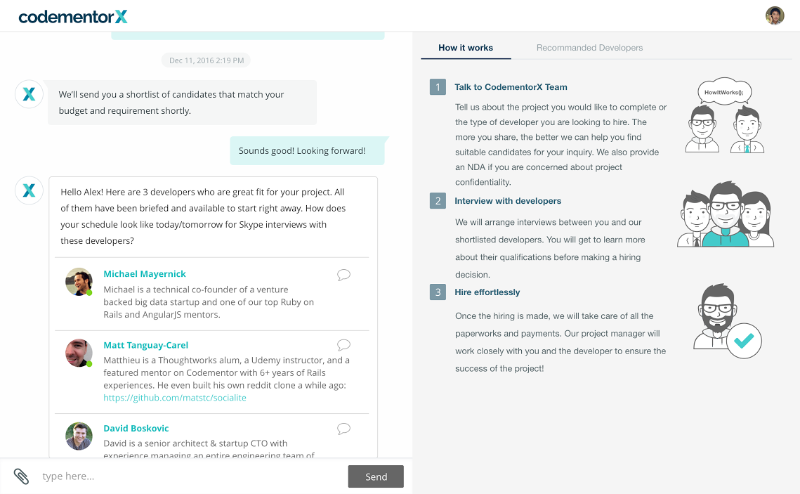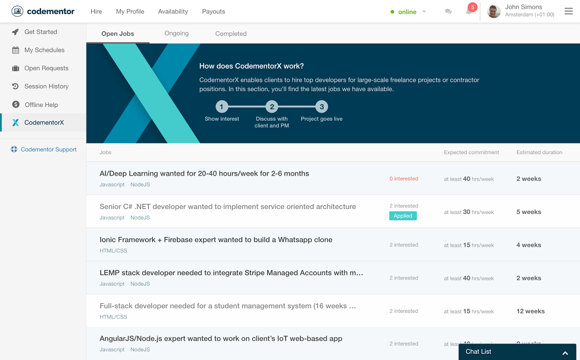 Over the past 2 years, Codementor has grown to become a vibrant developer marketplace for live 1:1 mentorship with 5000+ vetted expert developers. We're now expanding our marketplace with a new freelance platform called CodementorX.