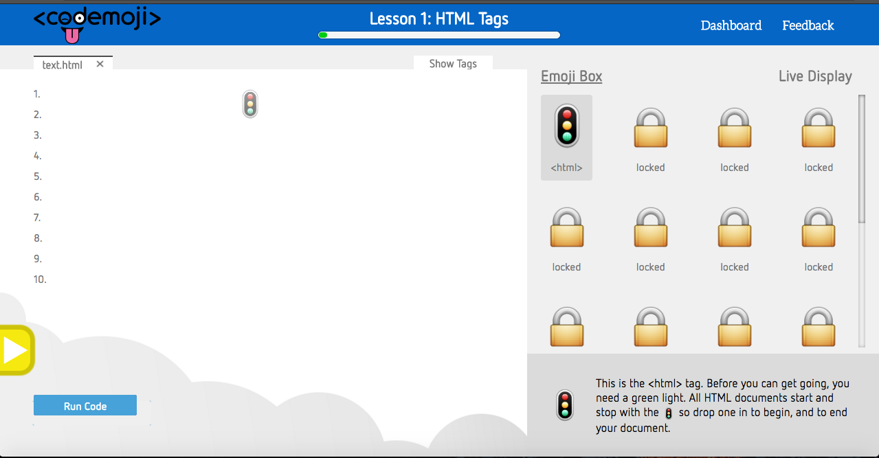 The platform me and my friend Chase made is called Codemoji.com and it helps k-8 grade students learn how to code using emojis. This keeps things fun while learn complex concepts. Codemoji teachers HTML,CSS and JS which are all coding languages used to make web-pages.