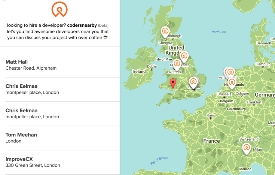 During your Beta, you should make it free for the first week to encourage people to get on the map! Another suggestion would be to allow other types of freelance, too! Designers, video/photo people, etc. etc. Love the idea. Great work!