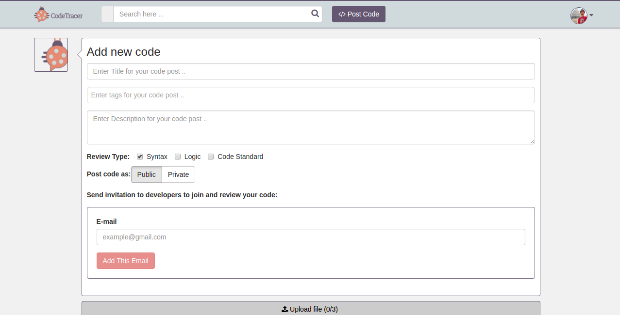 CodeTracer enables you to upload multiple files instead of code snippets, making the task easier for developers.
